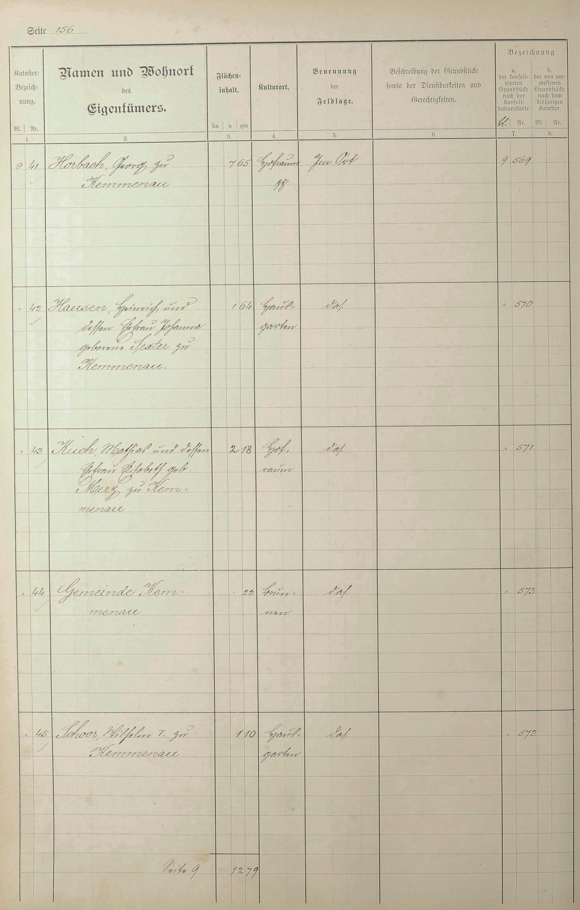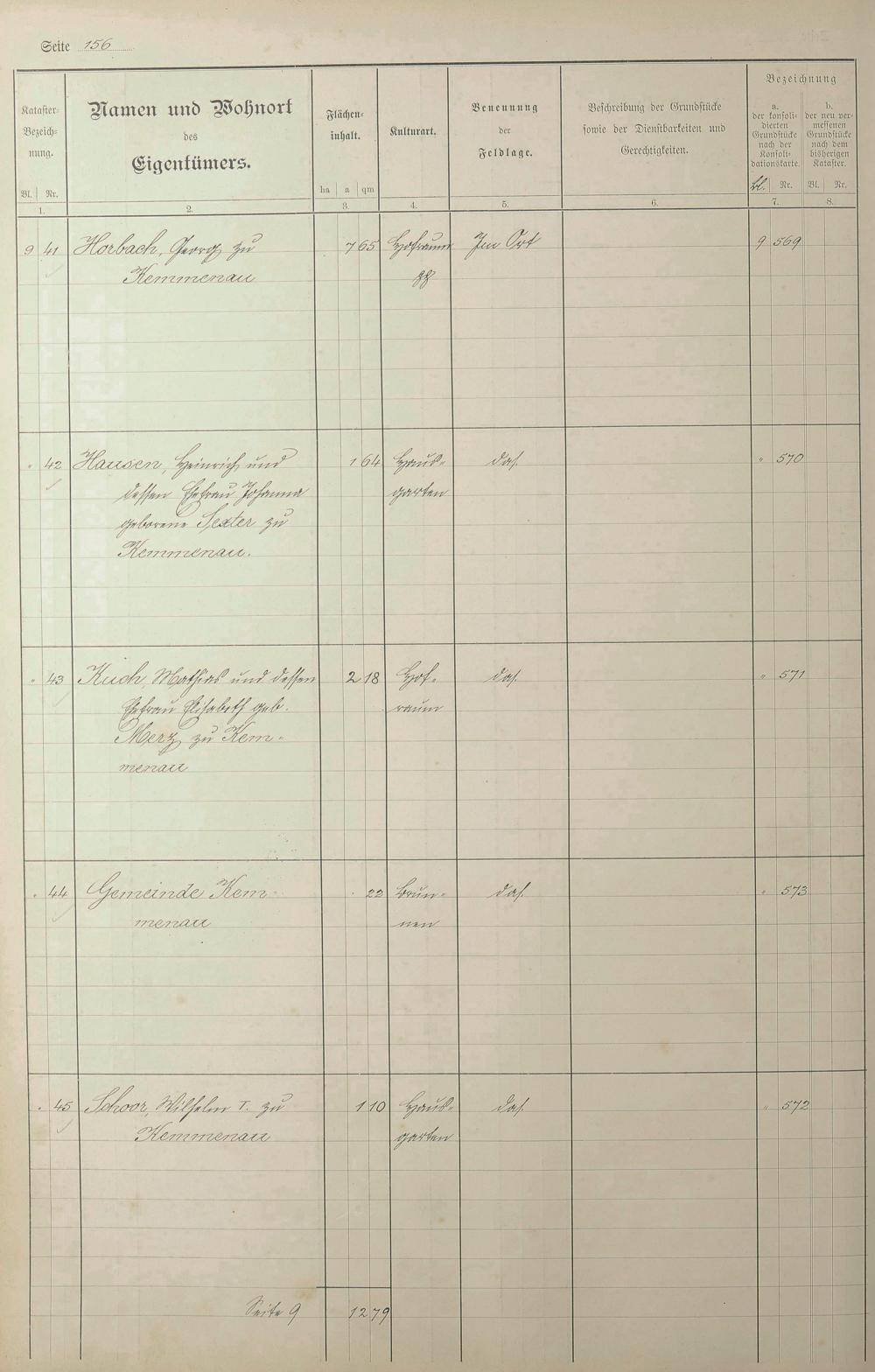 1: Lagerbuch der konsolidierten Gemarkung Kemmenau von dem Königlichen Kommissar...