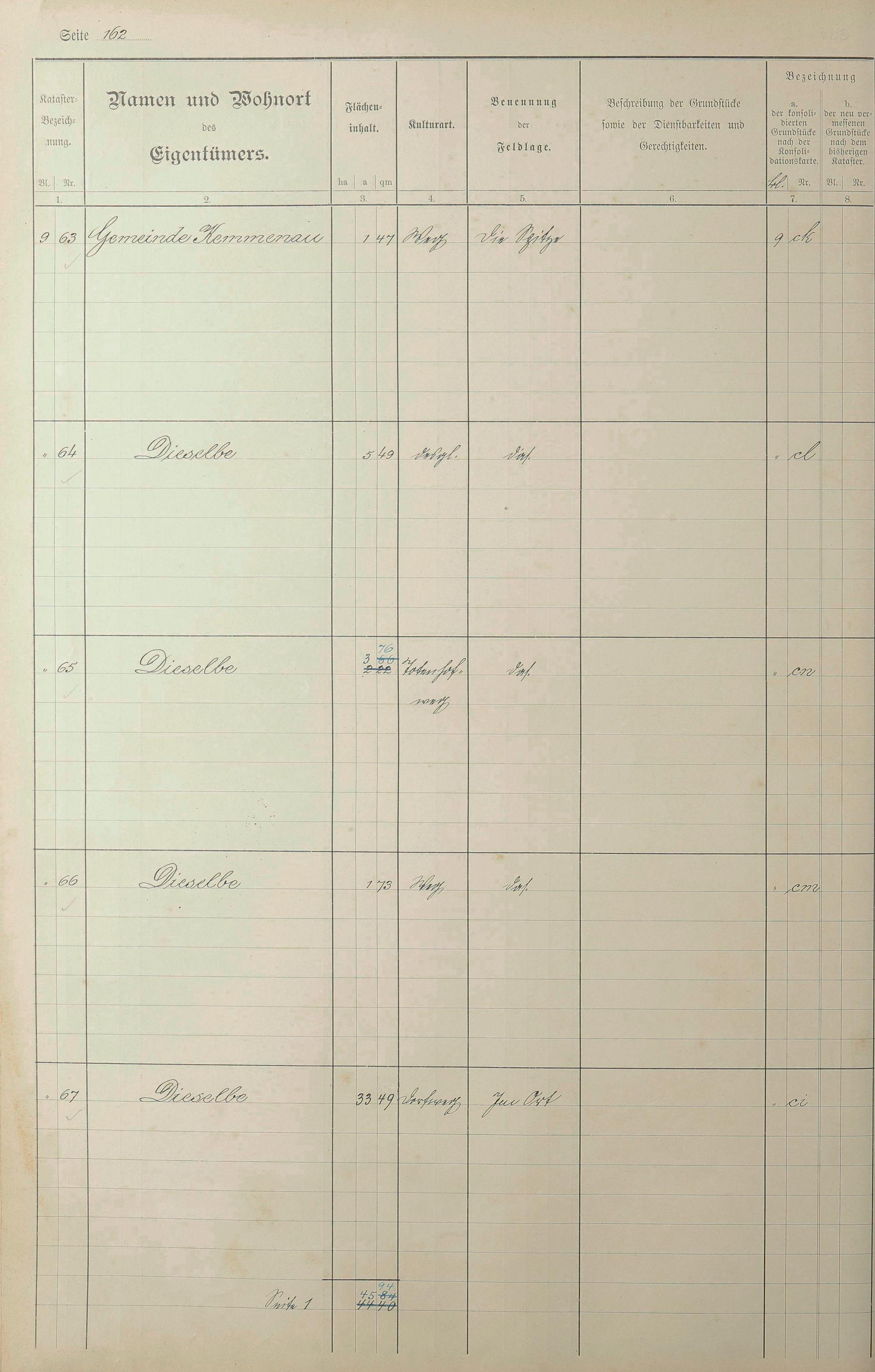 1: Lagerbuch der konsolidierten Gemarkung Kemmenau von dem Königlichen Kommissar...