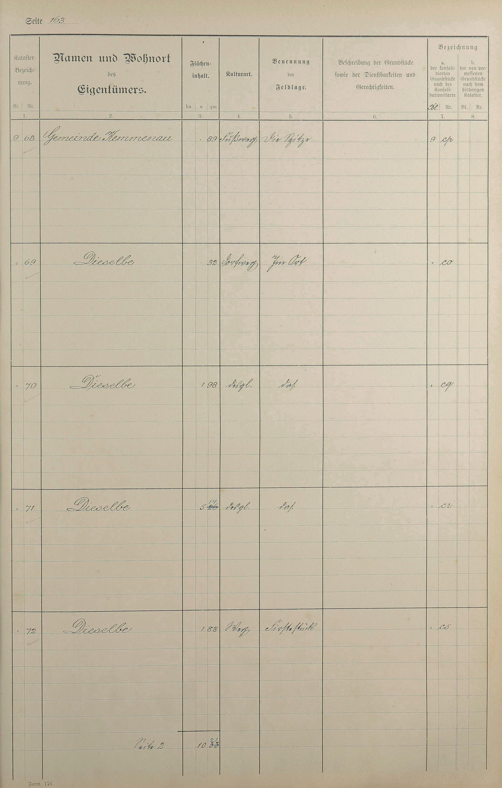 1: Lagerbuch der konsolidierten Gemarkung Kemmenau von dem Königlichen Kommissar...