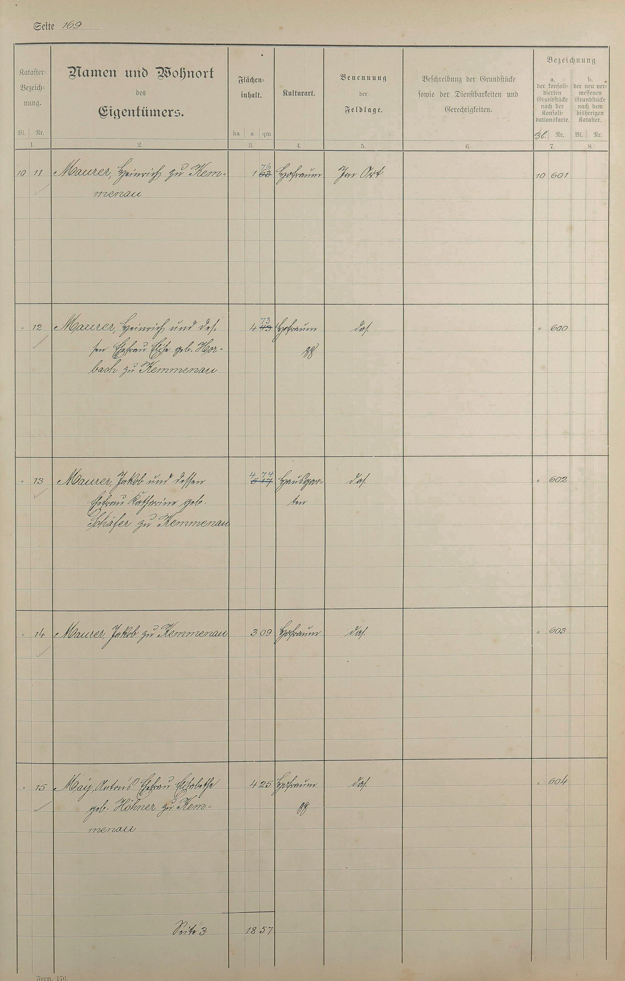 Lagerbuch der konsolidierten Gemarkung Kemmenau von dem Königlichen Kommissar für die Güterkonsolidation Regierungsrat Schiffler und Vermessungsbeamten Steinbichler