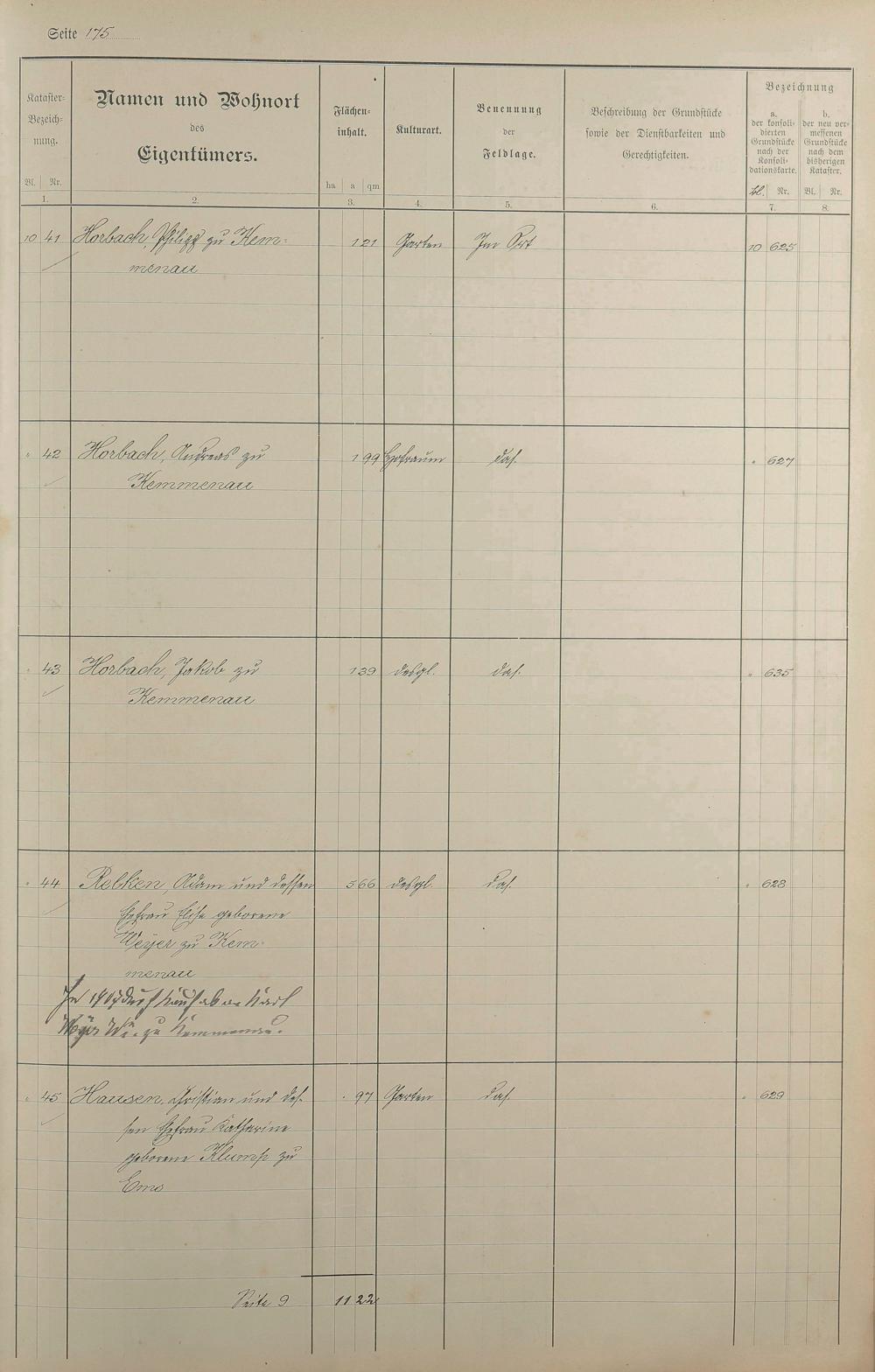 1: Lagerbuch der konsolidierten Gemarkung Kemmenau von dem Königlichen Kommissar...