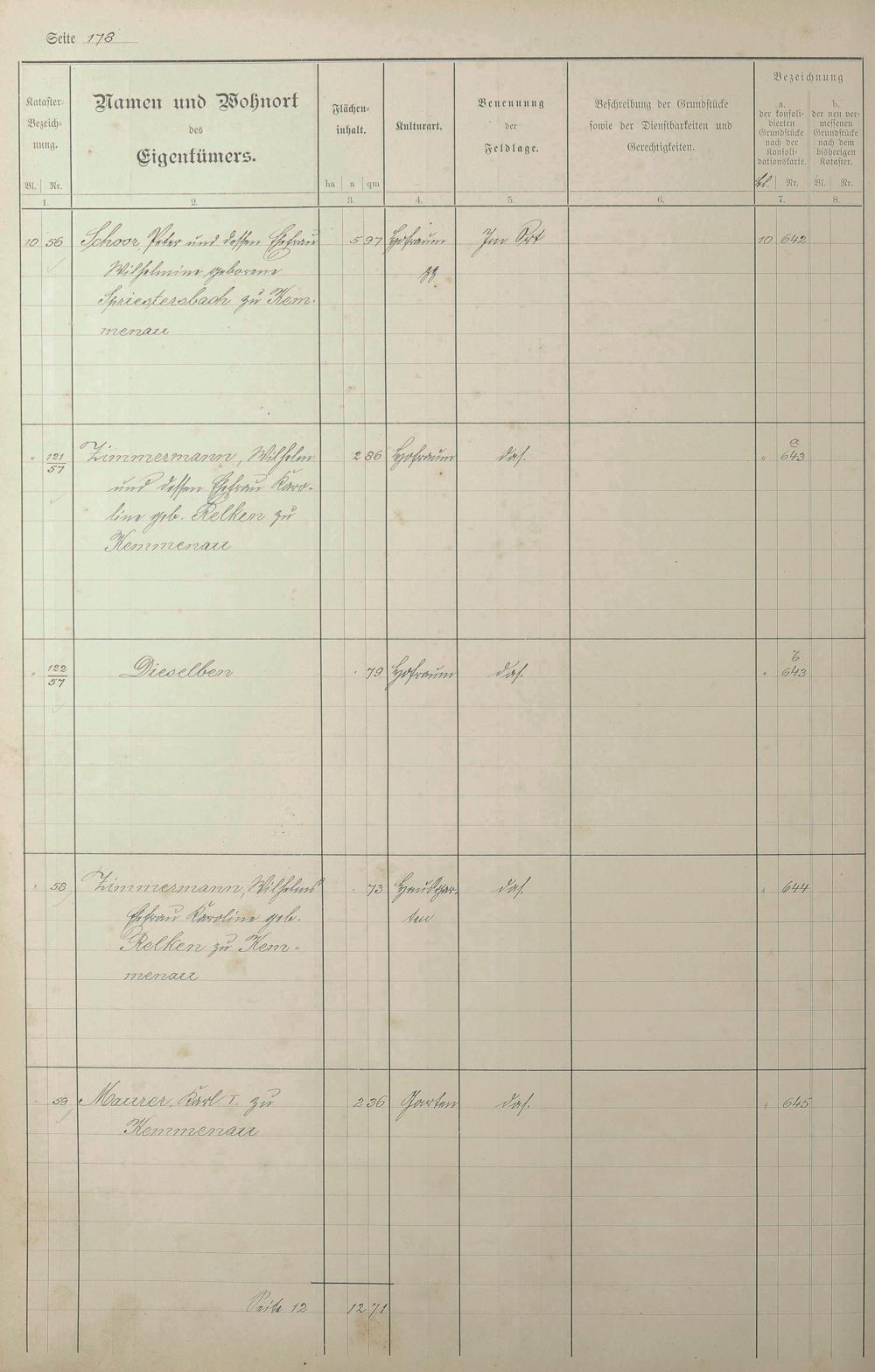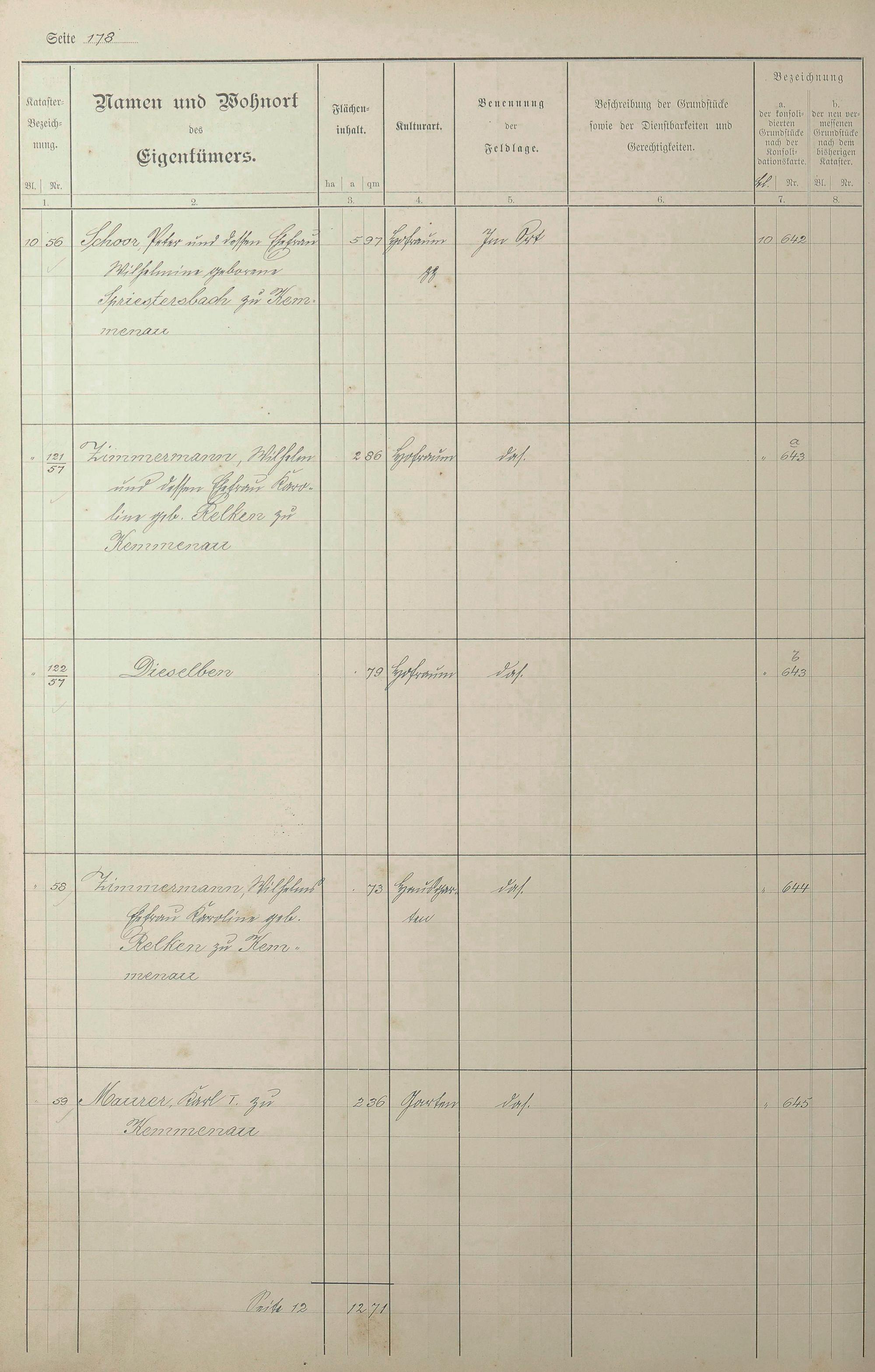 1: Lagerbuch der konsolidierten Gemarkung Kemmenau von dem Königlichen Kommissar...