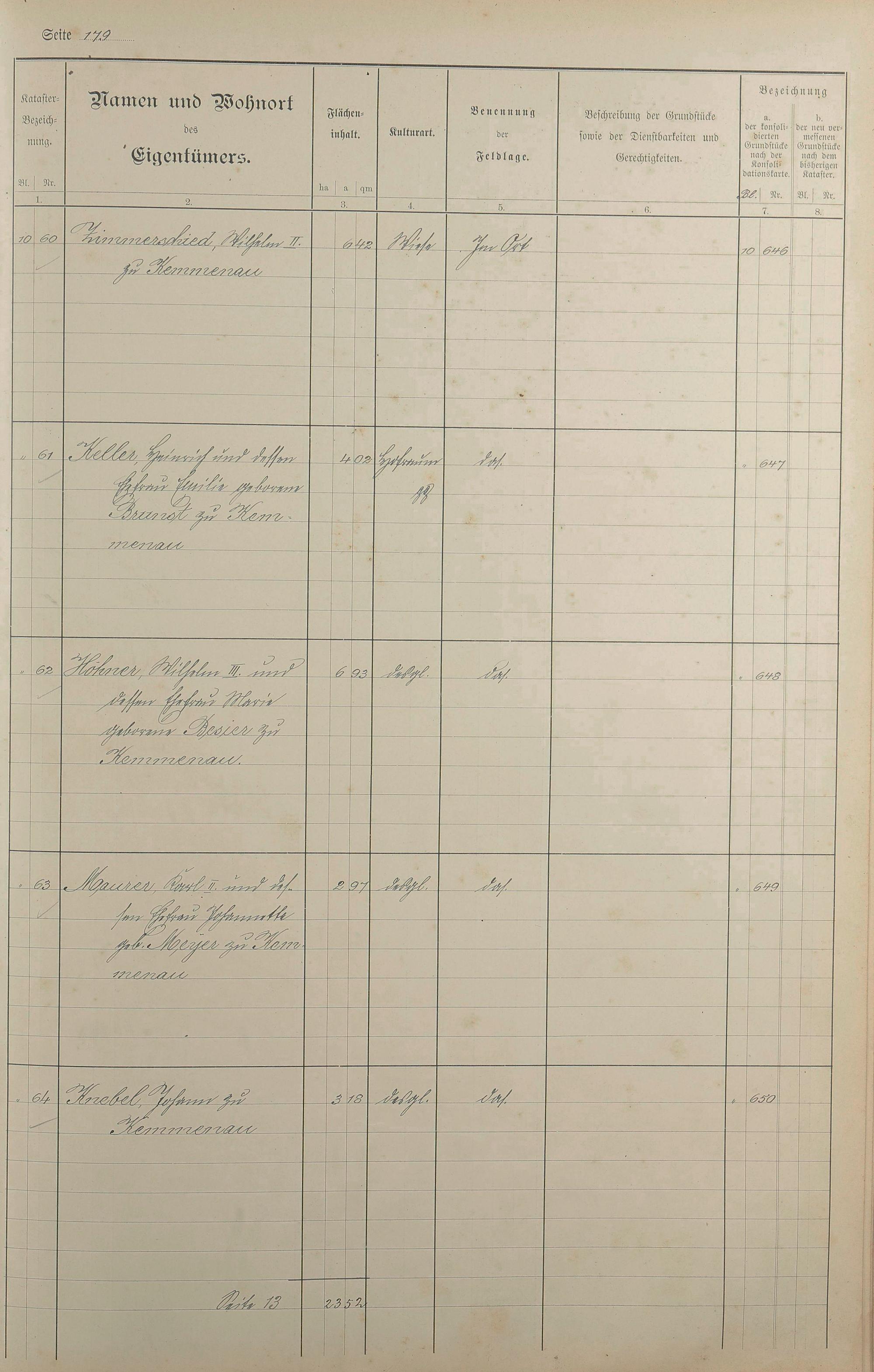 1: Lagerbuch der konsolidierten Gemarkung Kemmenau von dem Königlichen Kommissar...