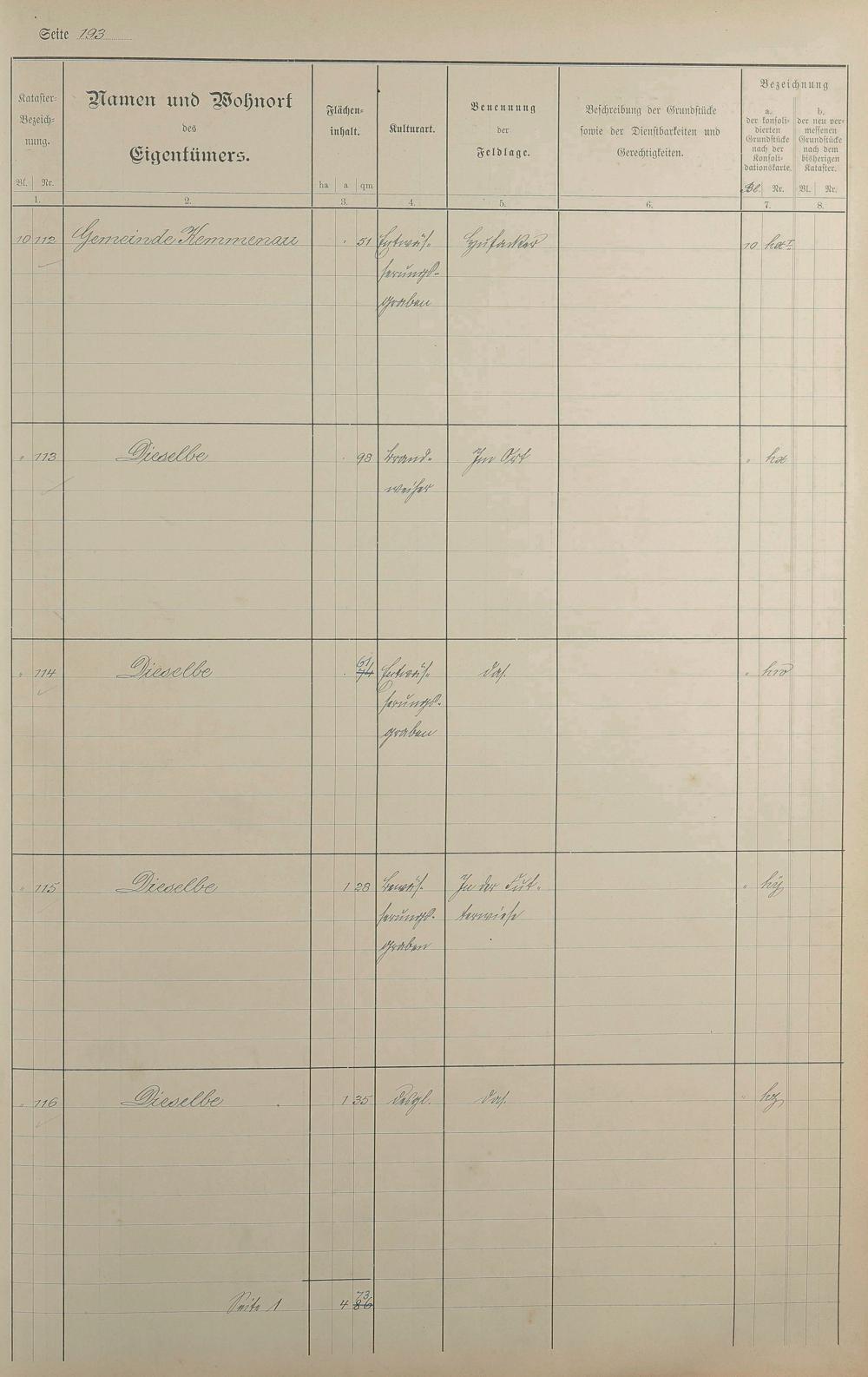 1: Lagerbuch der konsolidierten Gemarkung Kemmenau von dem Königlichen Kommissar...