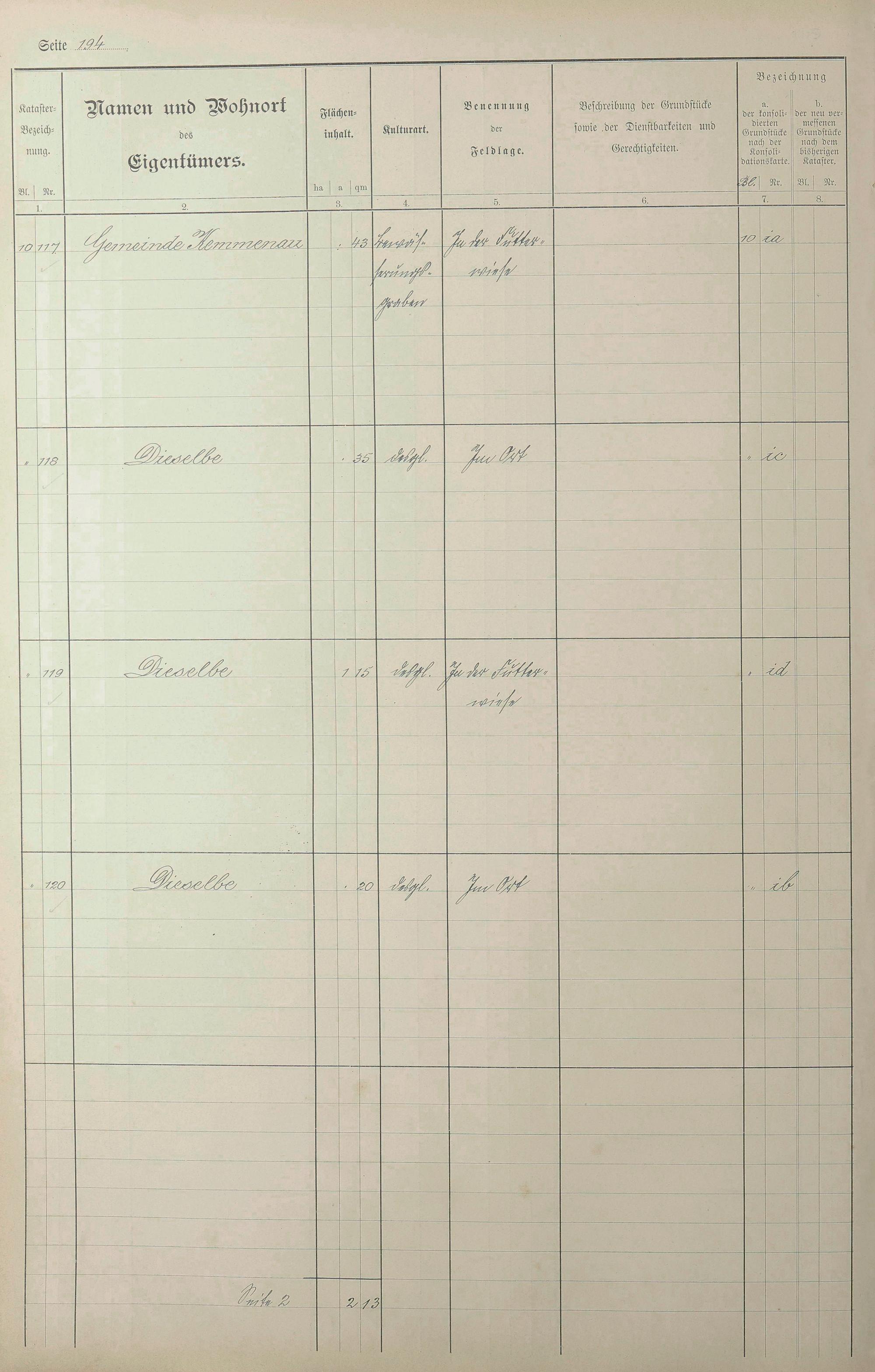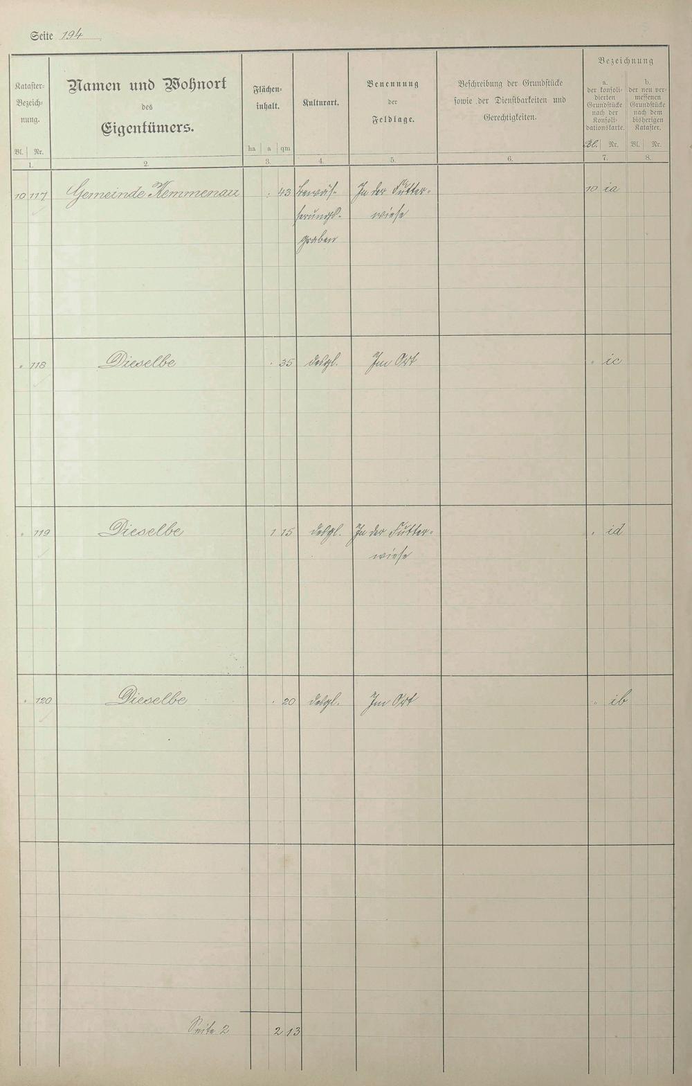 Lagerbuch der konsolidierten Gemarkung Kemmenau von dem Königlichen Kommissar für die Güterkonsolidation Regierungsrat Schiffler und Vermessungsbeamten Steinbichler