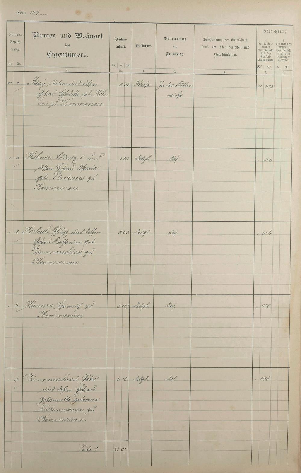 1: Lagerbuch der konsolidierten Gemarkung Kemmenau von dem Königlichen Kommissar...