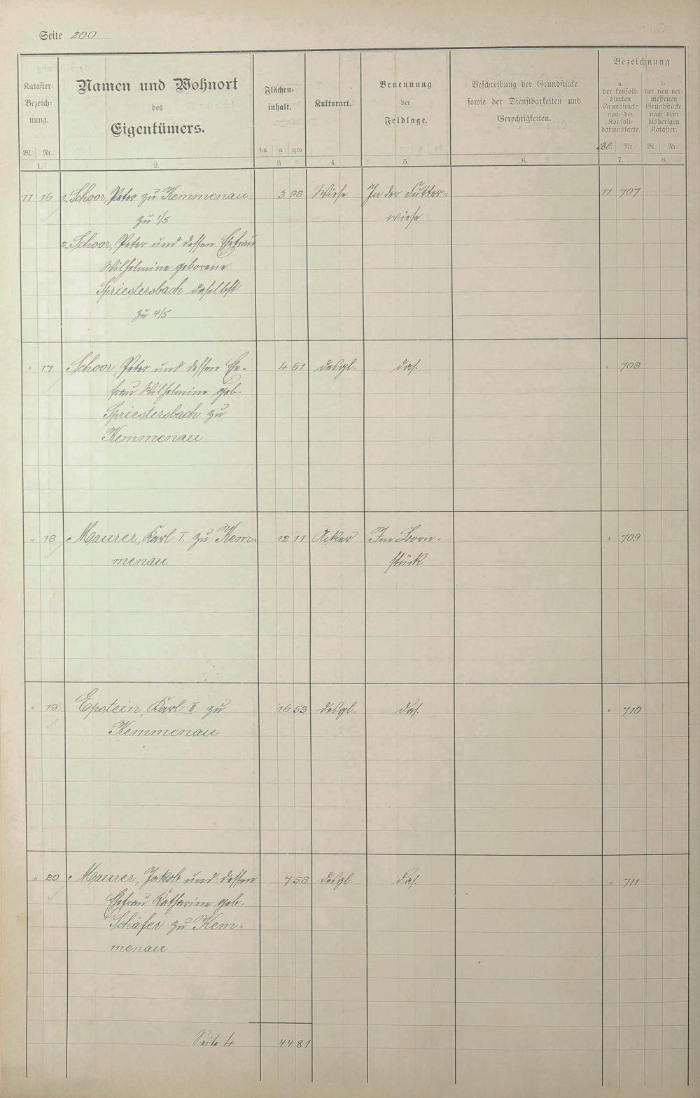 1: Lagerbuch der konsolidierten Gemarkung Kemmenau von dem Königlichen Kommissar...