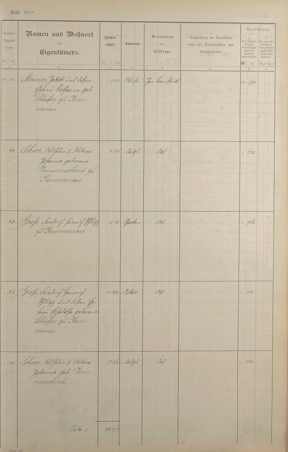 Lagerbuch der konsolidierten Gemarkung Kemmenau von dem Königlichen Kommissar für die Güterkonsolidation Regierungsrat Schiffler und Vermessungsbeamten Steinbichler