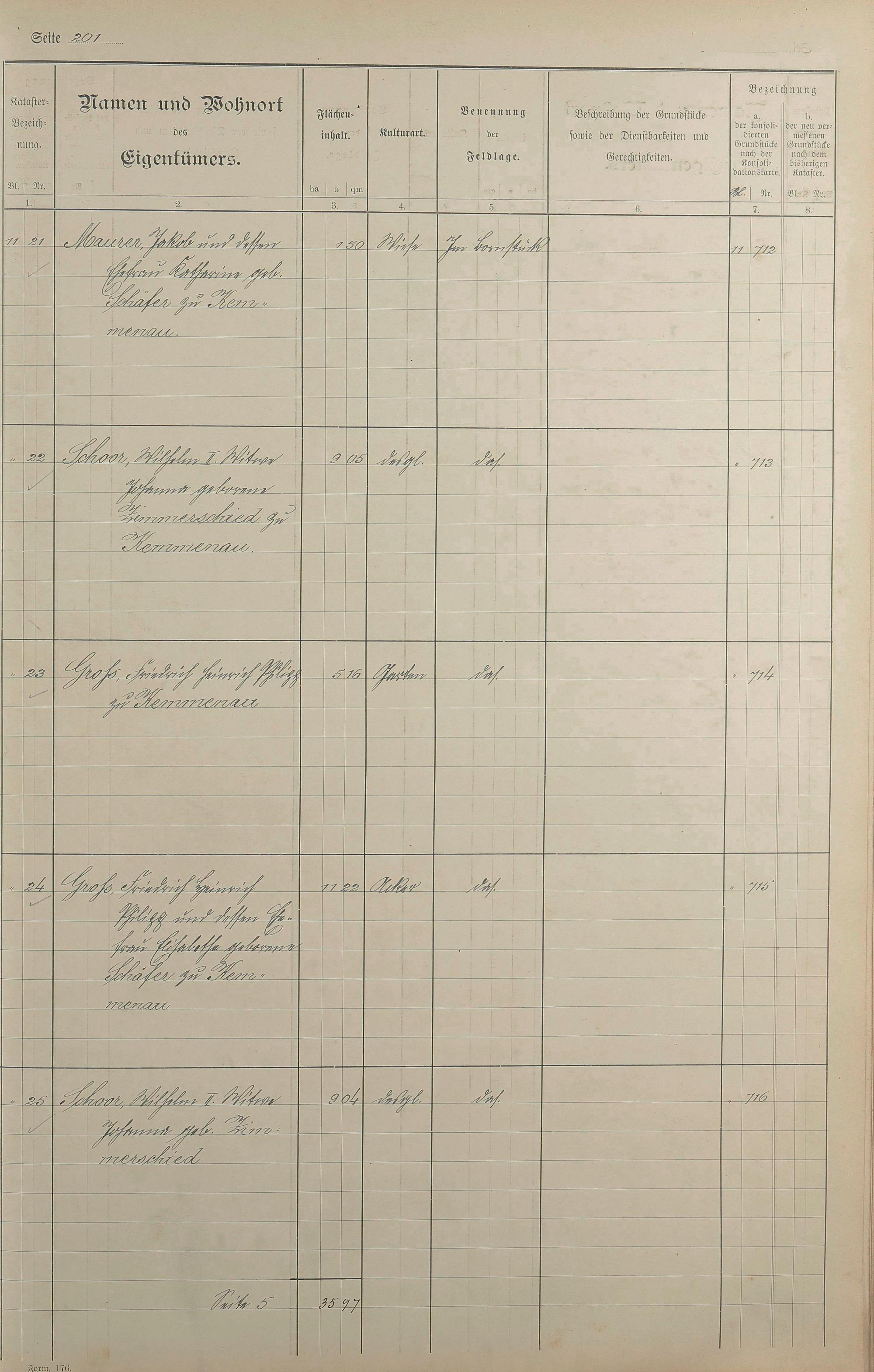 1: Lagerbuch der konsolidierten Gemarkung Kemmenau von dem Königlichen Kommissar...