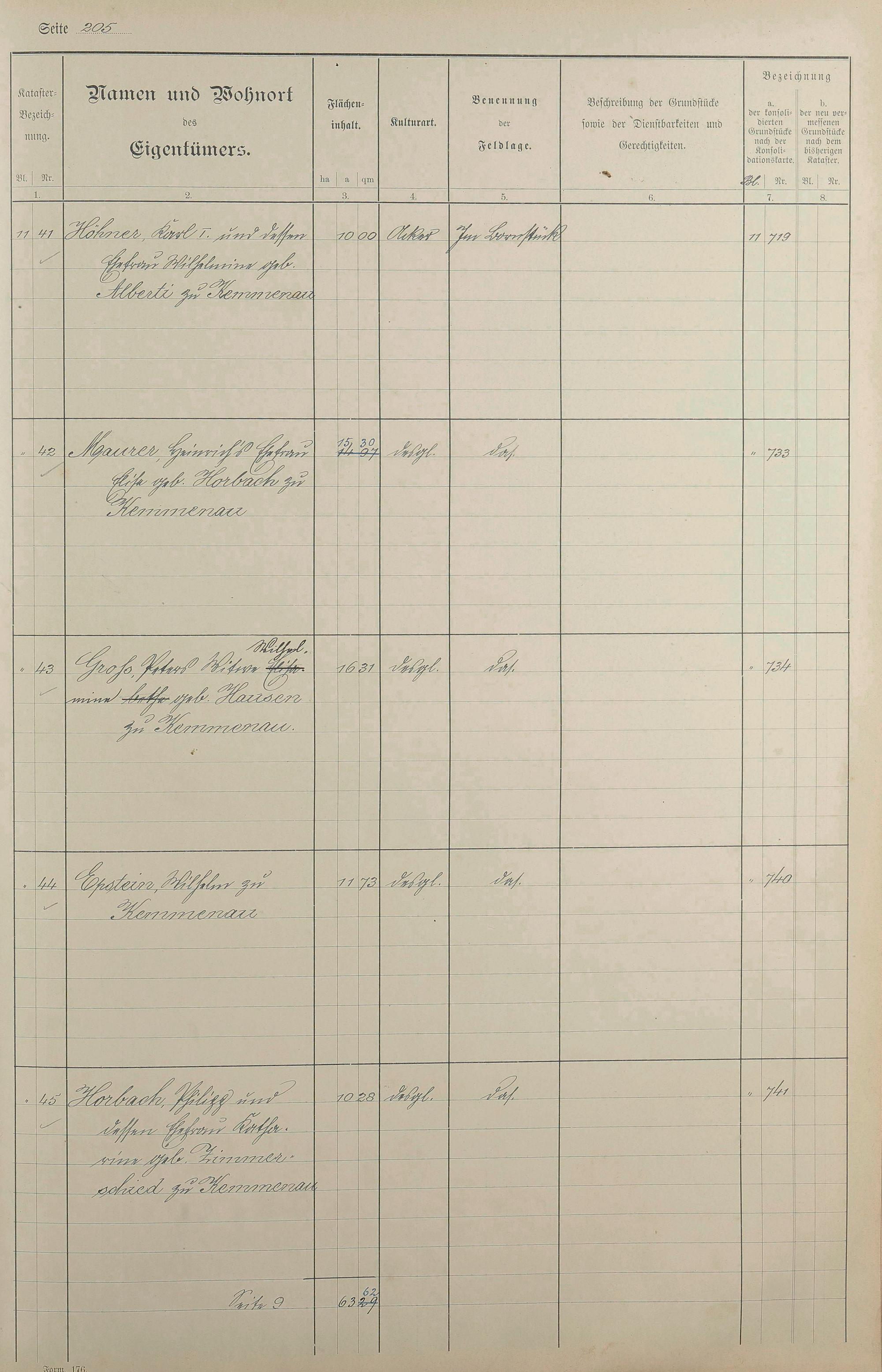 Lagerbuch der konsolidierten Gemarkung Kemmenau von dem Königlichen Kommissar für die Güterkonsolidation Regierungsrat Schiffler und Vermessungsbeamten Steinbichler