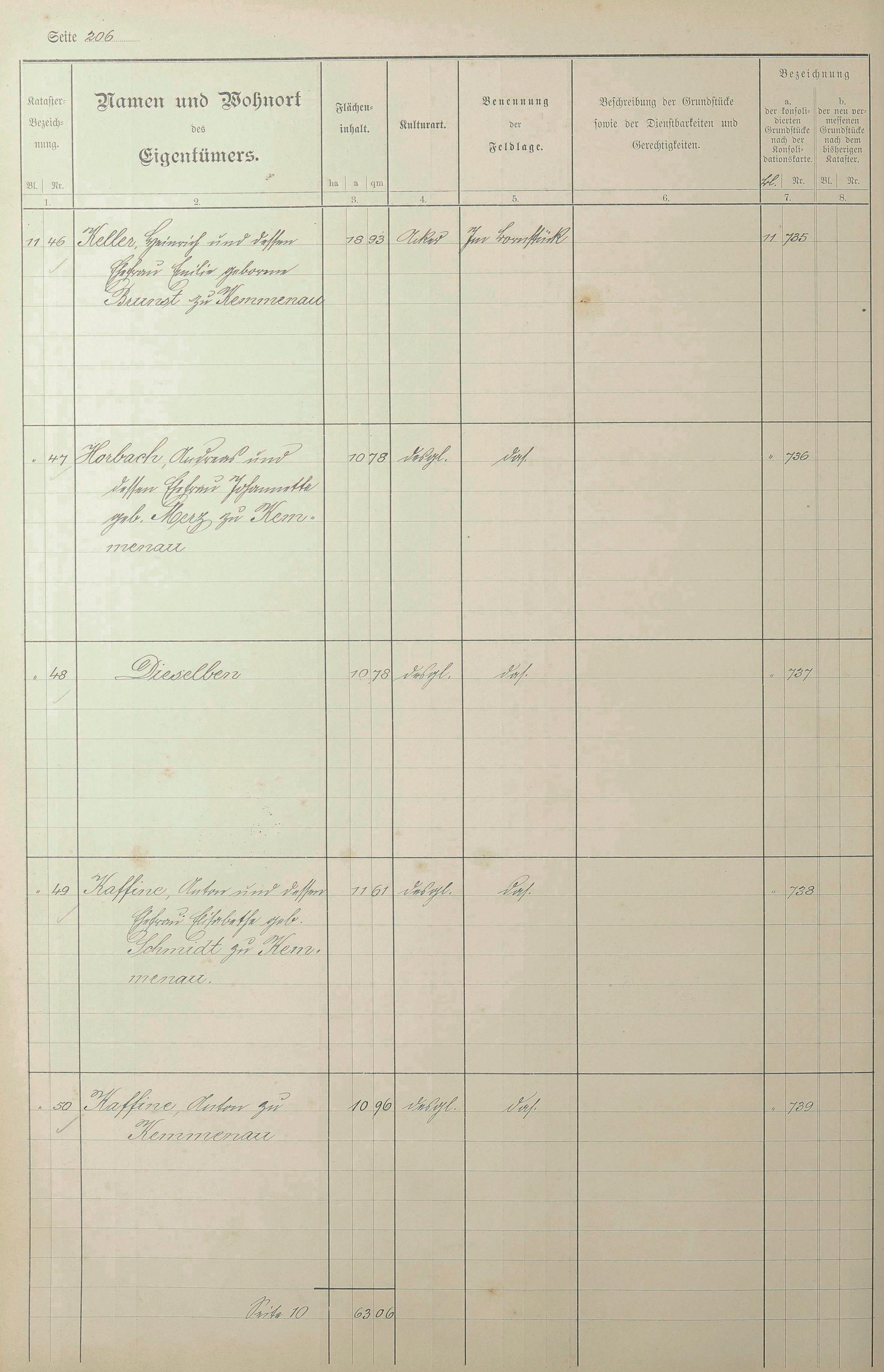 1: Lagerbuch der konsolidierten Gemarkung Kemmenau von dem Königlichen Kommissar...