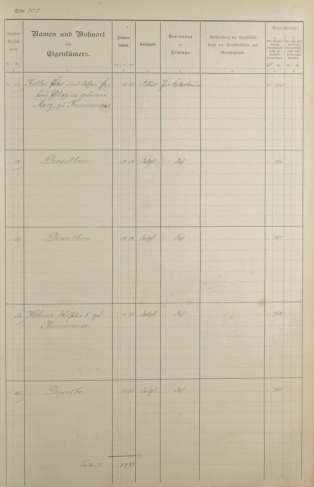 1: Lagerbuch der konsolidierten Gemarkung Kemmenau von dem Königlichen Kommissar...