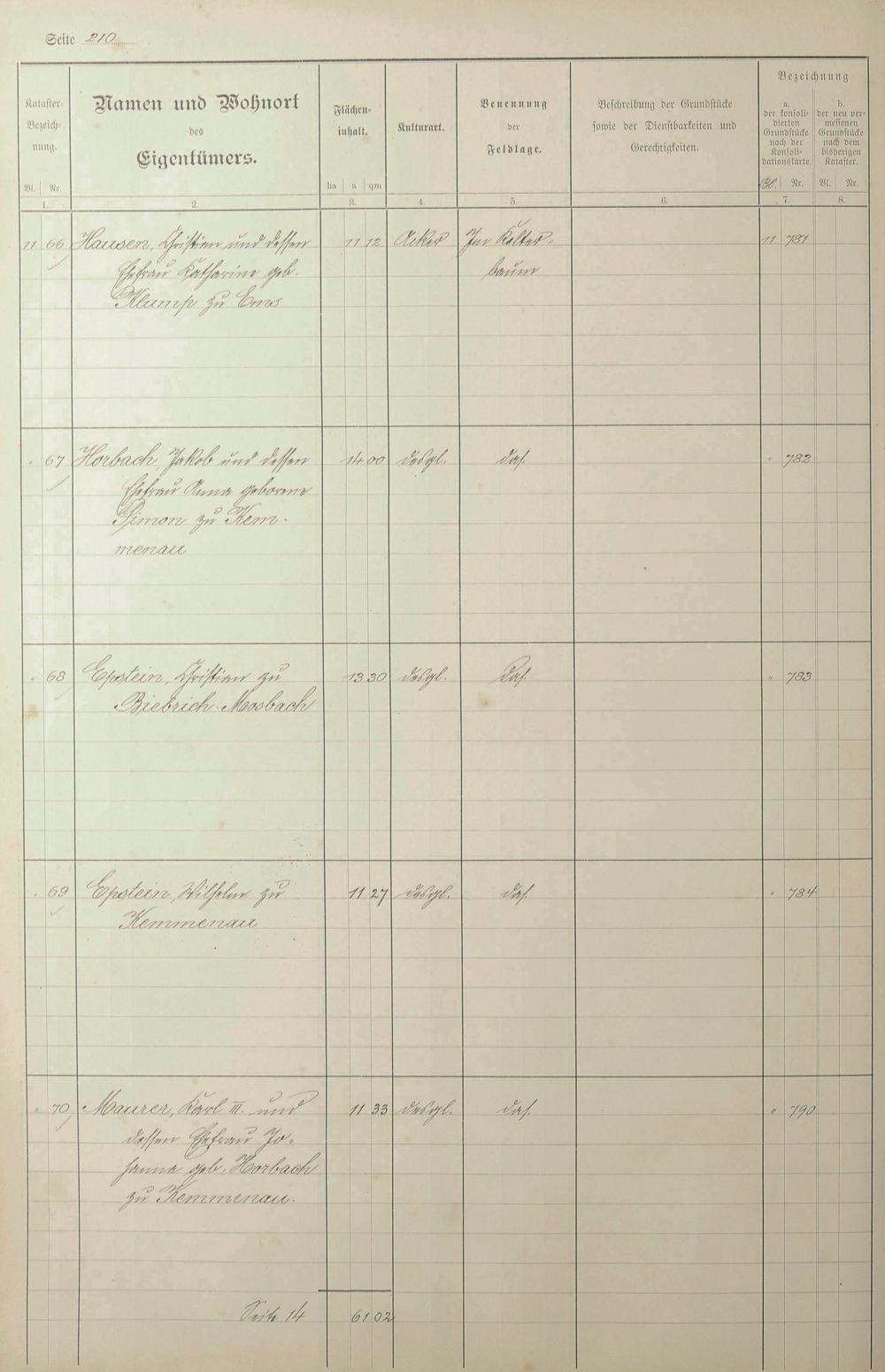 1: Lagerbuch der konsolidierten Gemarkung Kemmenau von dem Königlichen Kommissar...