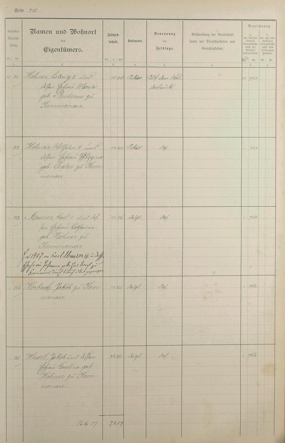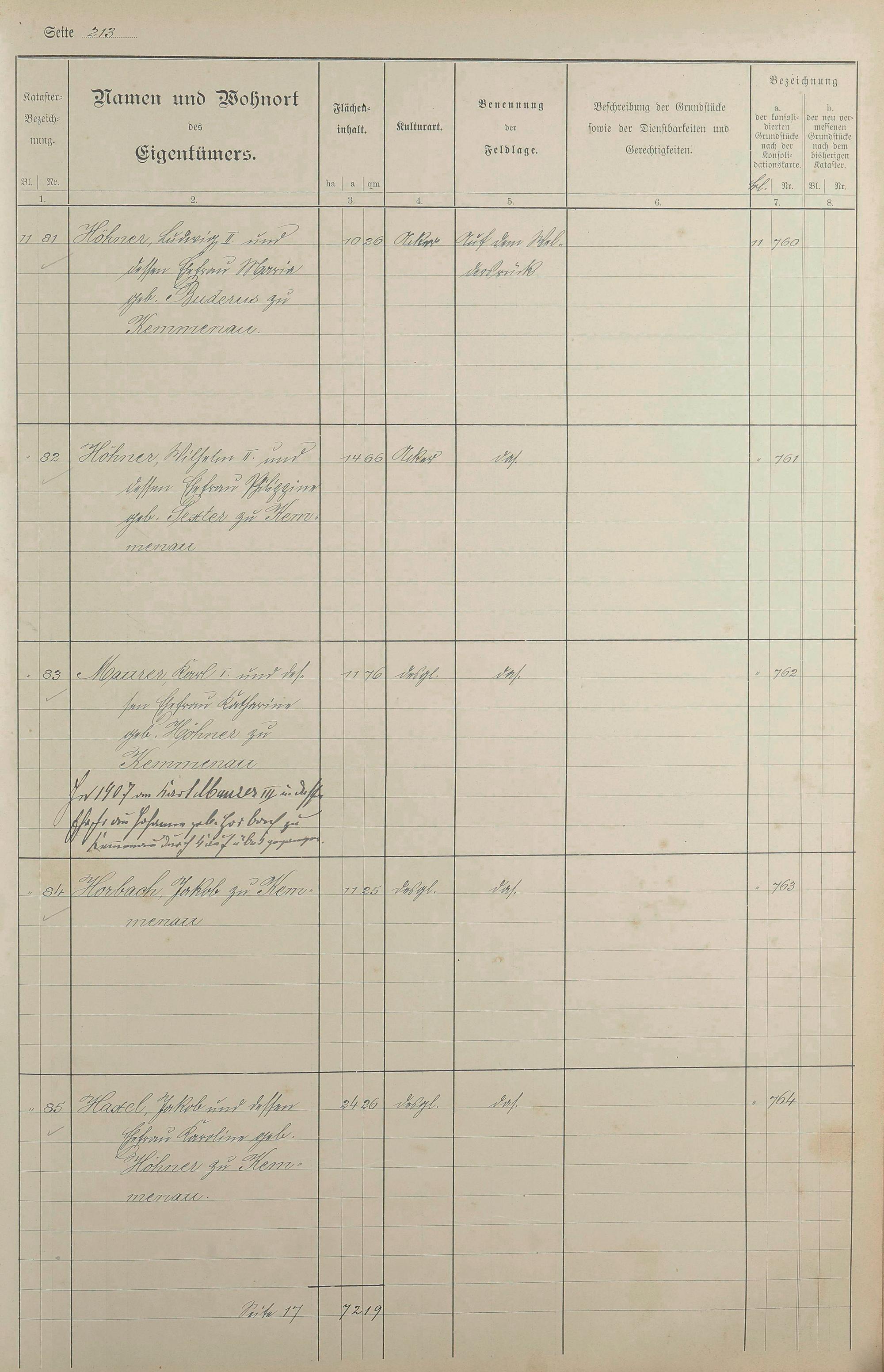 Lagerbuch der konsolidierten Gemarkung Kemmenau von dem Königlichen Kommissar für die Güterkonsolidation Regierungsrat Schiffler und Vermessungsbeamten Steinbichler