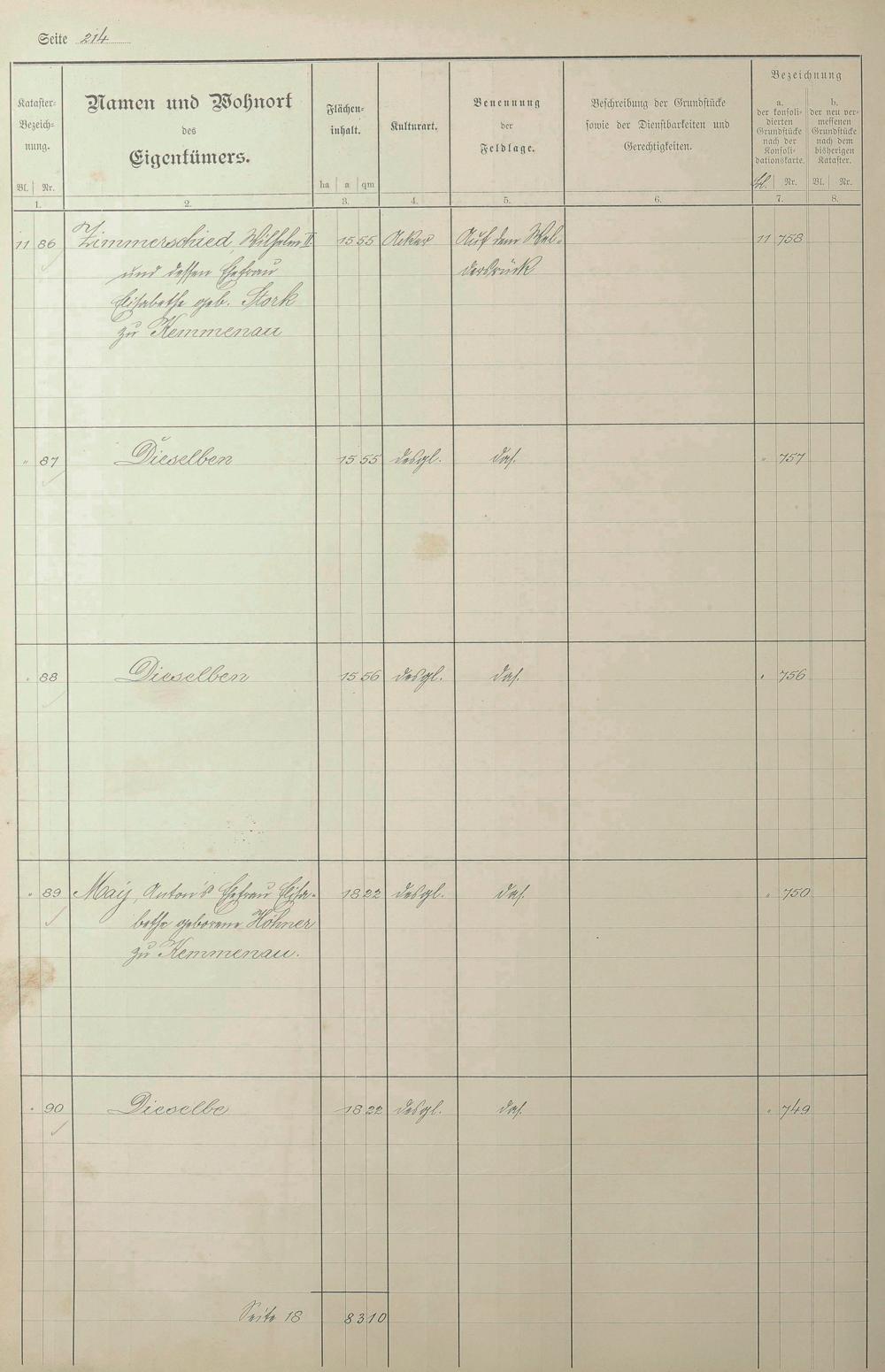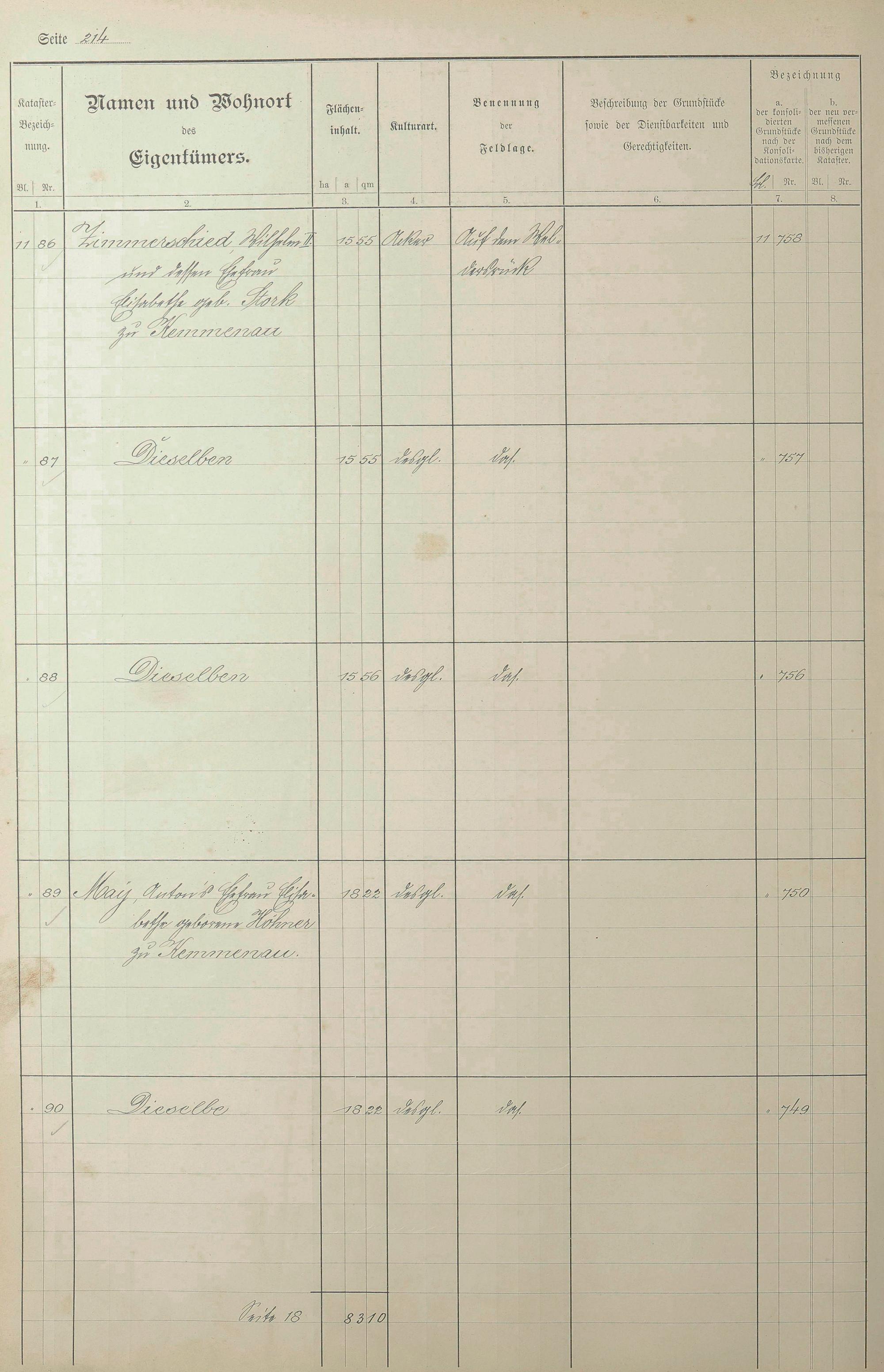 1: Lagerbuch der konsolidierten Gemarkung Kemmenau von dem Königlichen Kommissar...