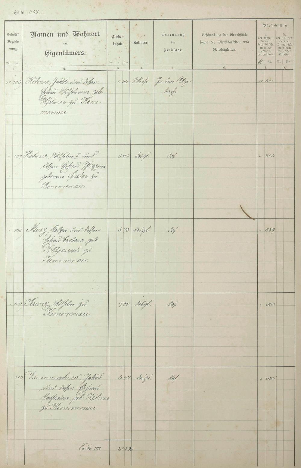 1: Lagerbuch der konsolidierten Gemarkung Kemmenau von dem Königlichen Kommissar...