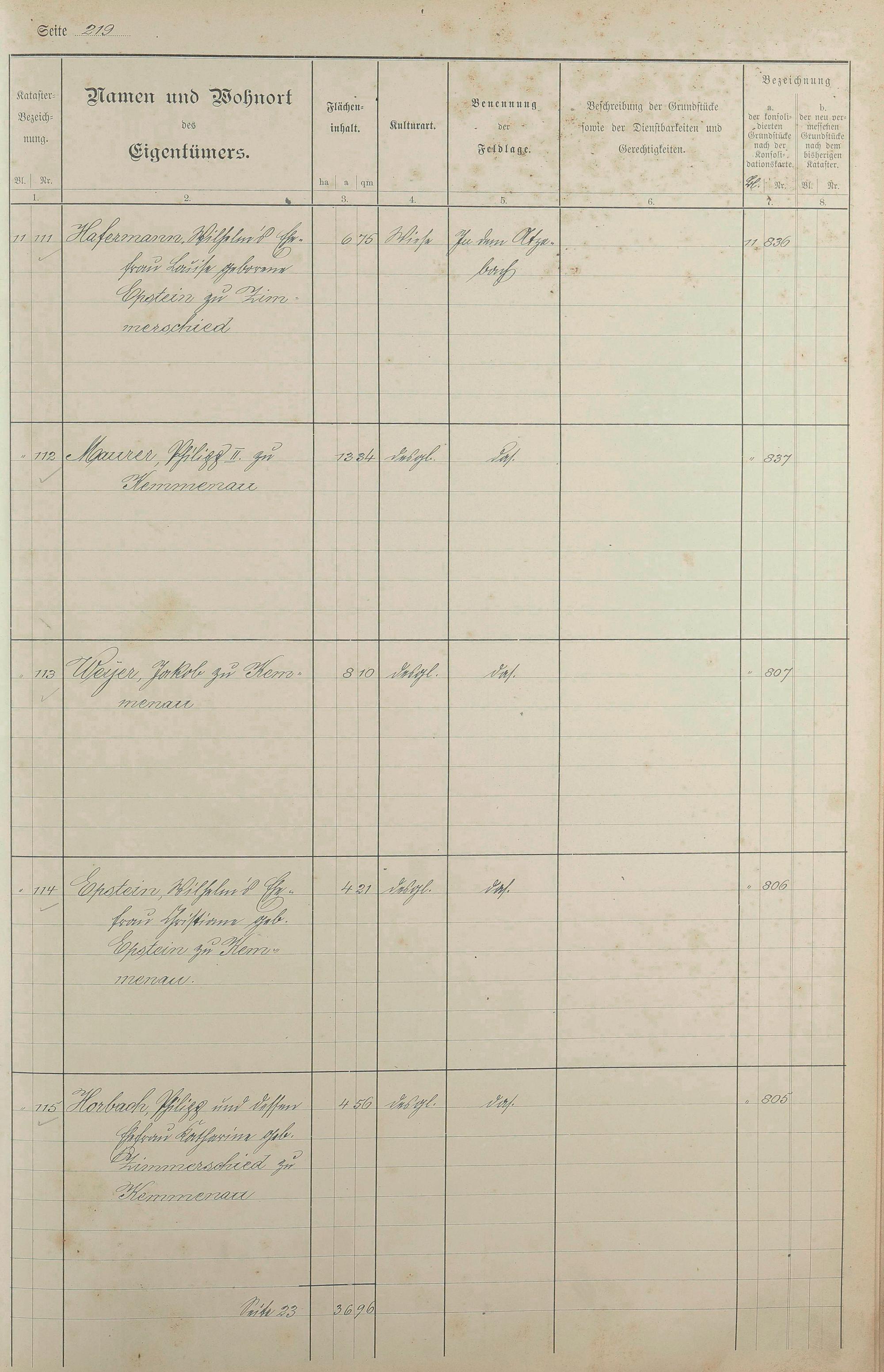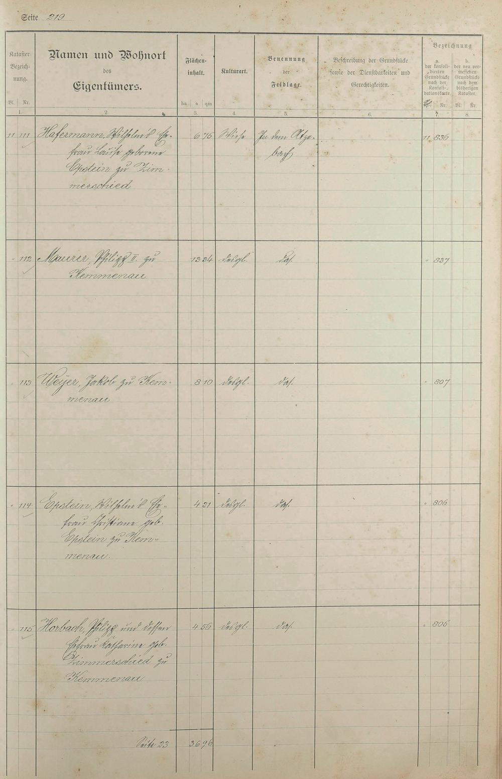 1: Lagerbuch der konsolidierten Gemarkung Kemmenau von dem Königlichen Kommissar...