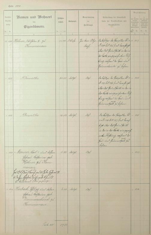 1: Lagerbuch der konsolidierten Gemarkung Kemmenau von dem Königlichen Kommissar...