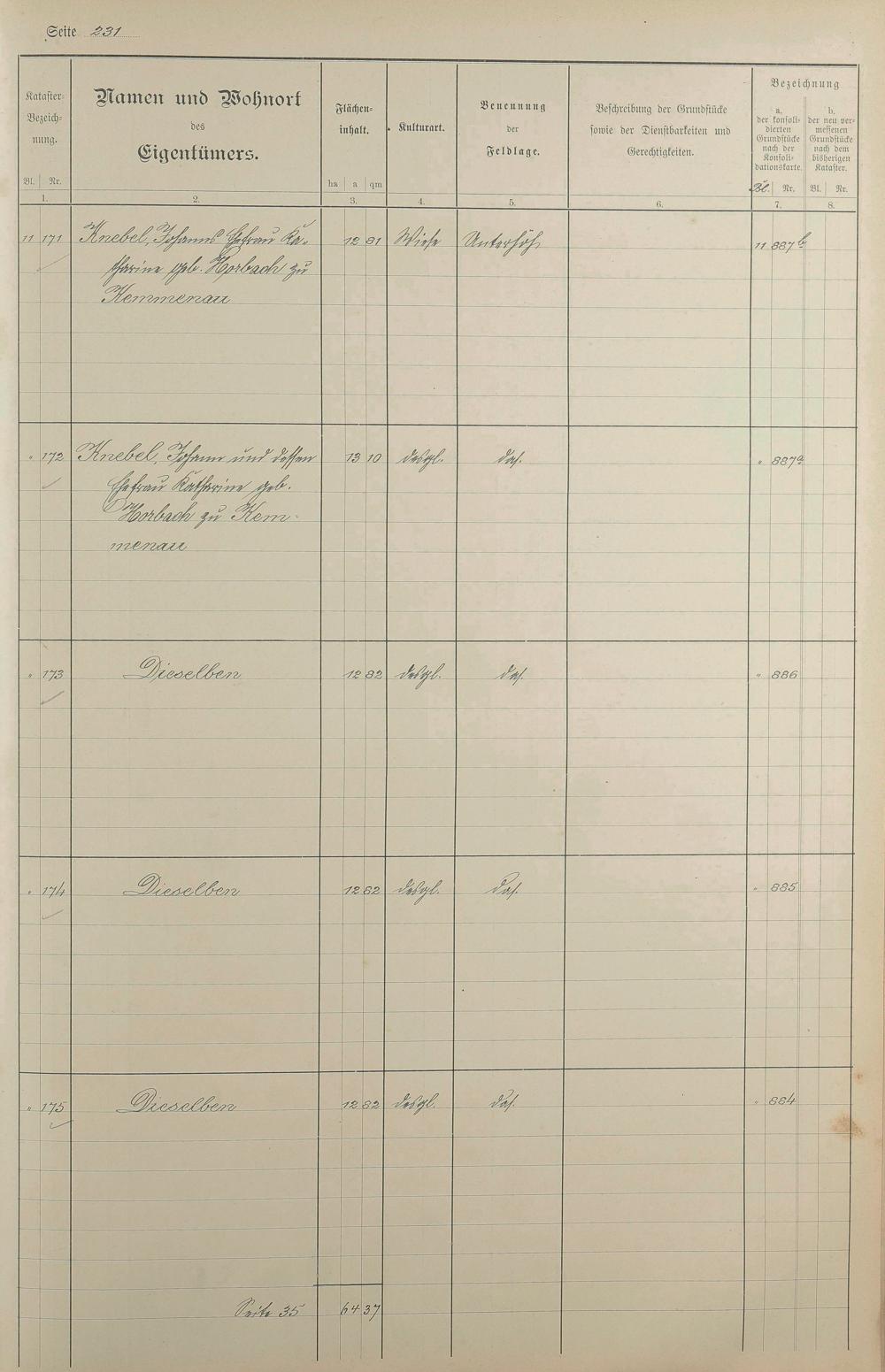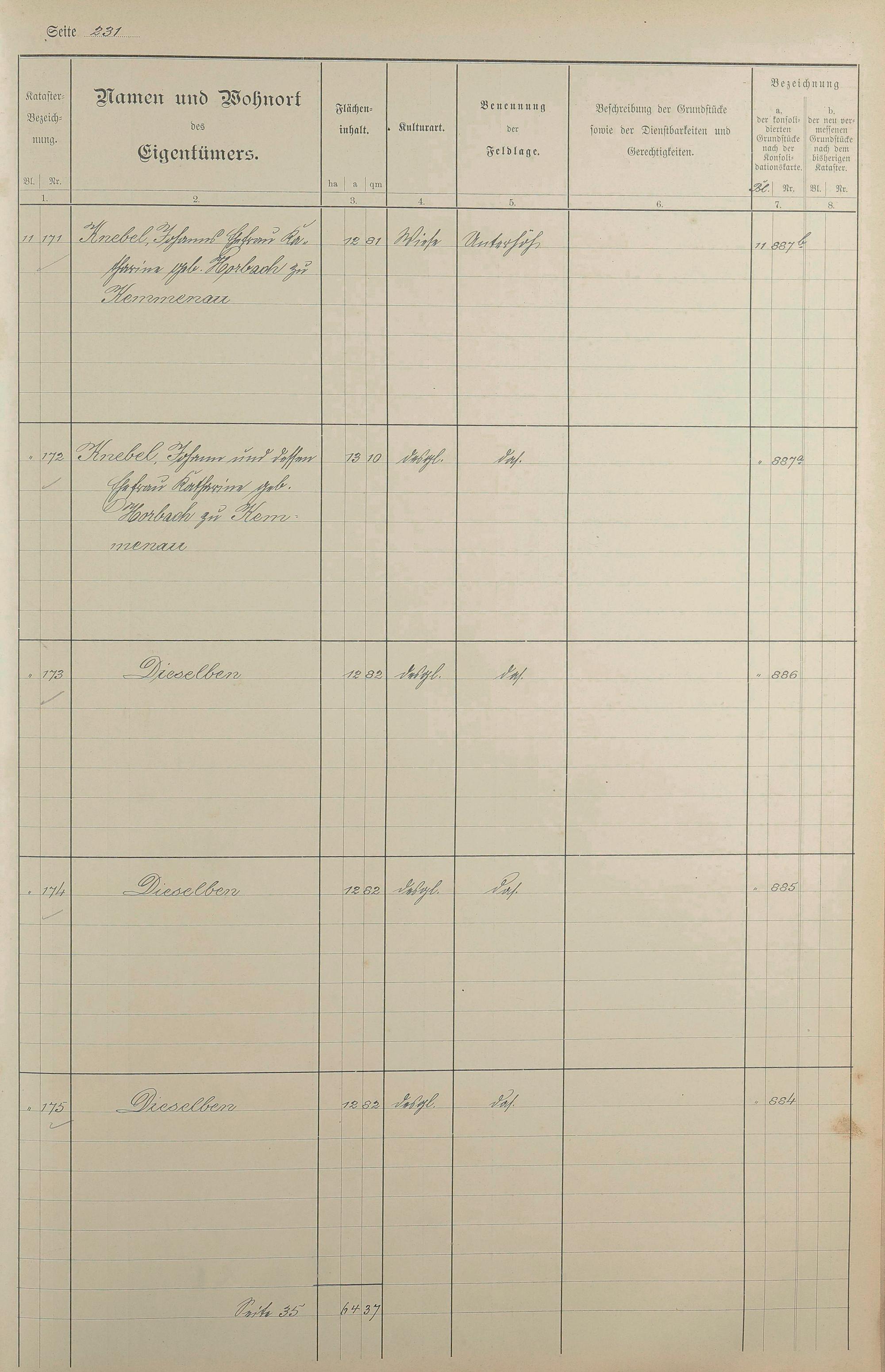 1: Lagerbuch der konsolidierten Gemarkung Kemmenau von dem Königlichen Kommissar...