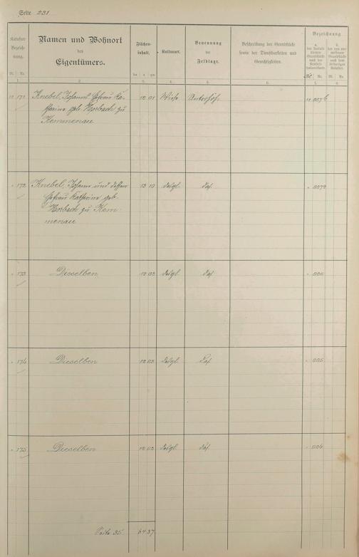 Lagerbuch der konsolidierten Gemarkung Kemmenau von dem Königlichen Kommissar für die Güterkonsolidation Regierungsrat Schiffler und Vermessungsbeamten Steinbichler