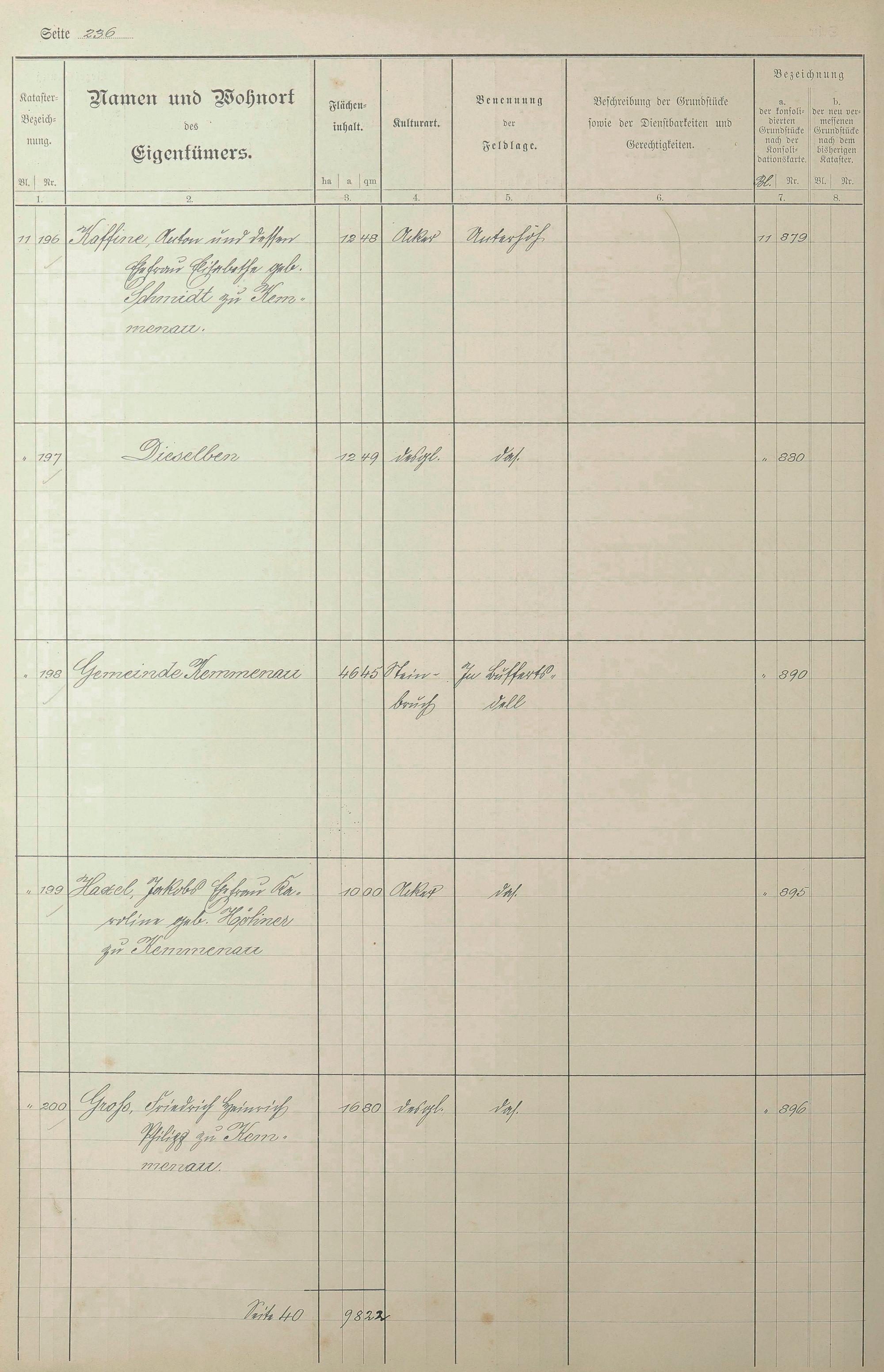 1: Lagerbuch der konsolidierten Gemarkung Kemmenau von dem Königlichen Kommissar...