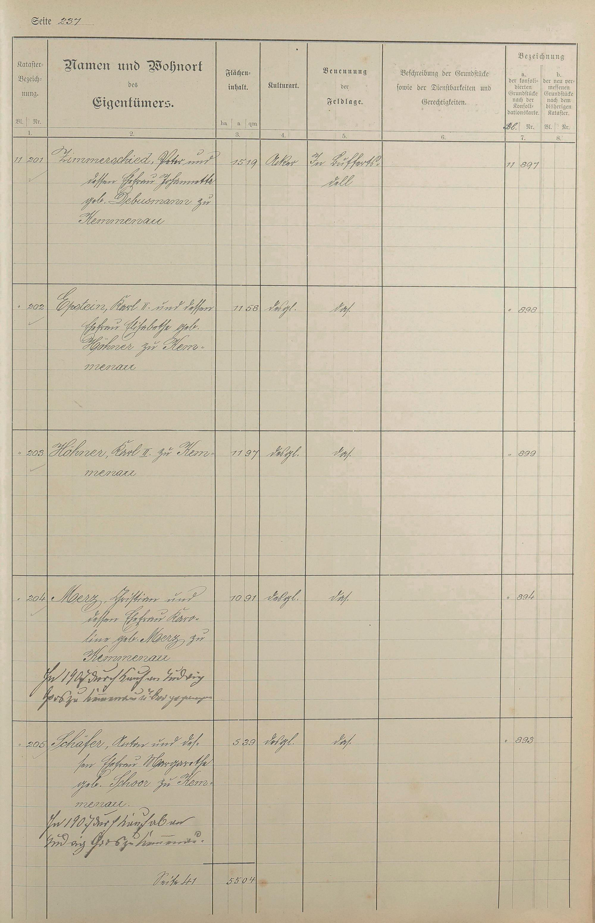Lagerbuch der konsolidierten Gemarkung Kemmenau von dem Königlichen Kommissar für die Güterkonsolidation Regierungsrat Schiffler und Vermessungsbeamten Steinbichler