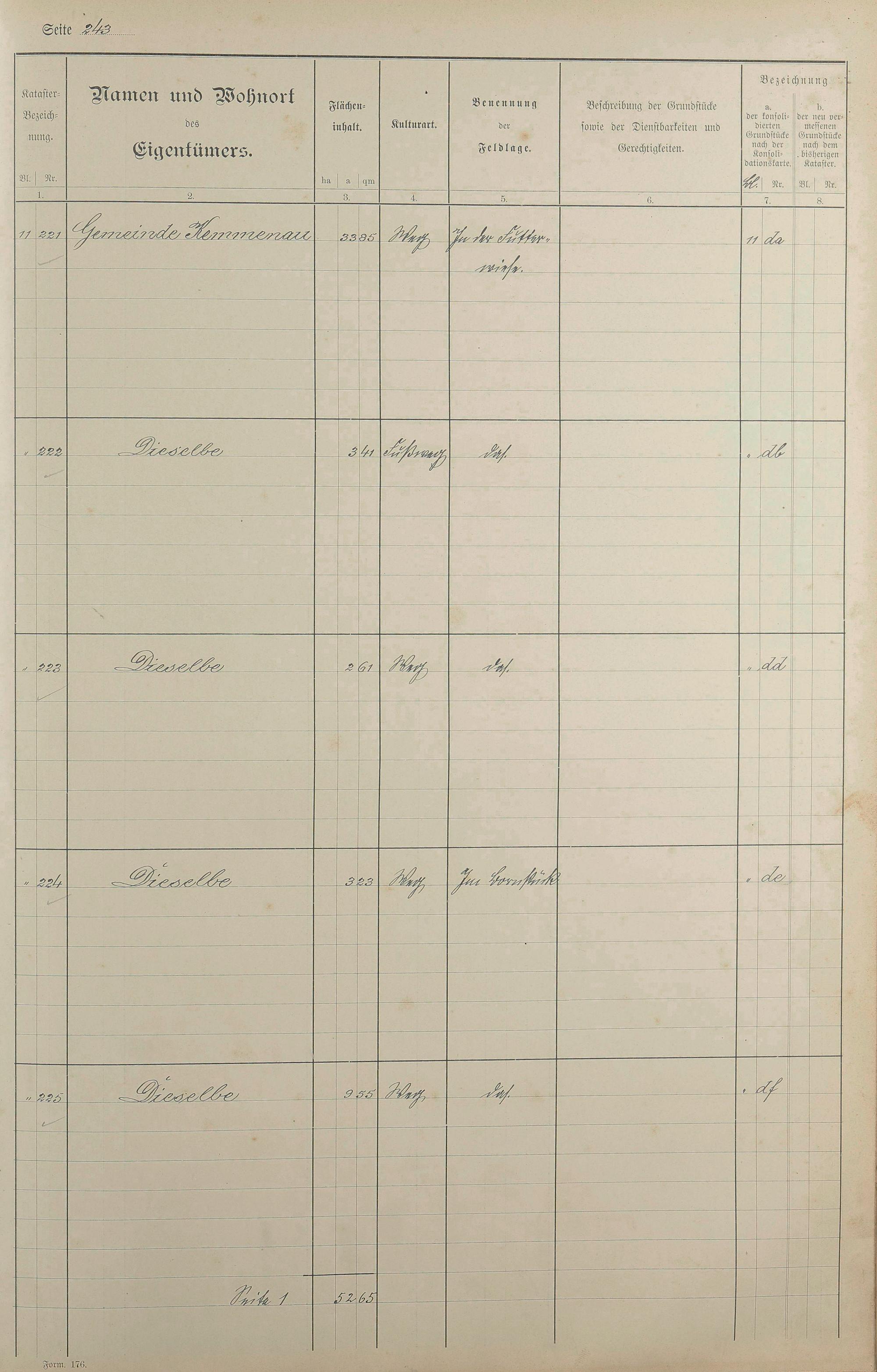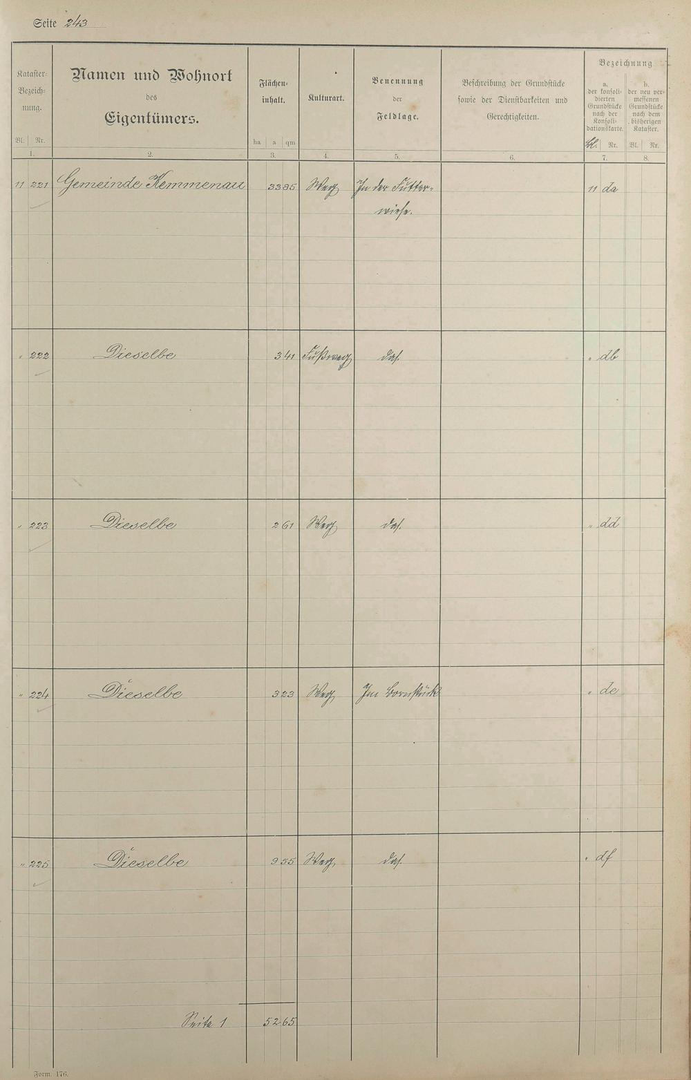 1: Lagerbuch der konsolidierten Gemarkung Kemmenau von dem Königlichen Kommissar...