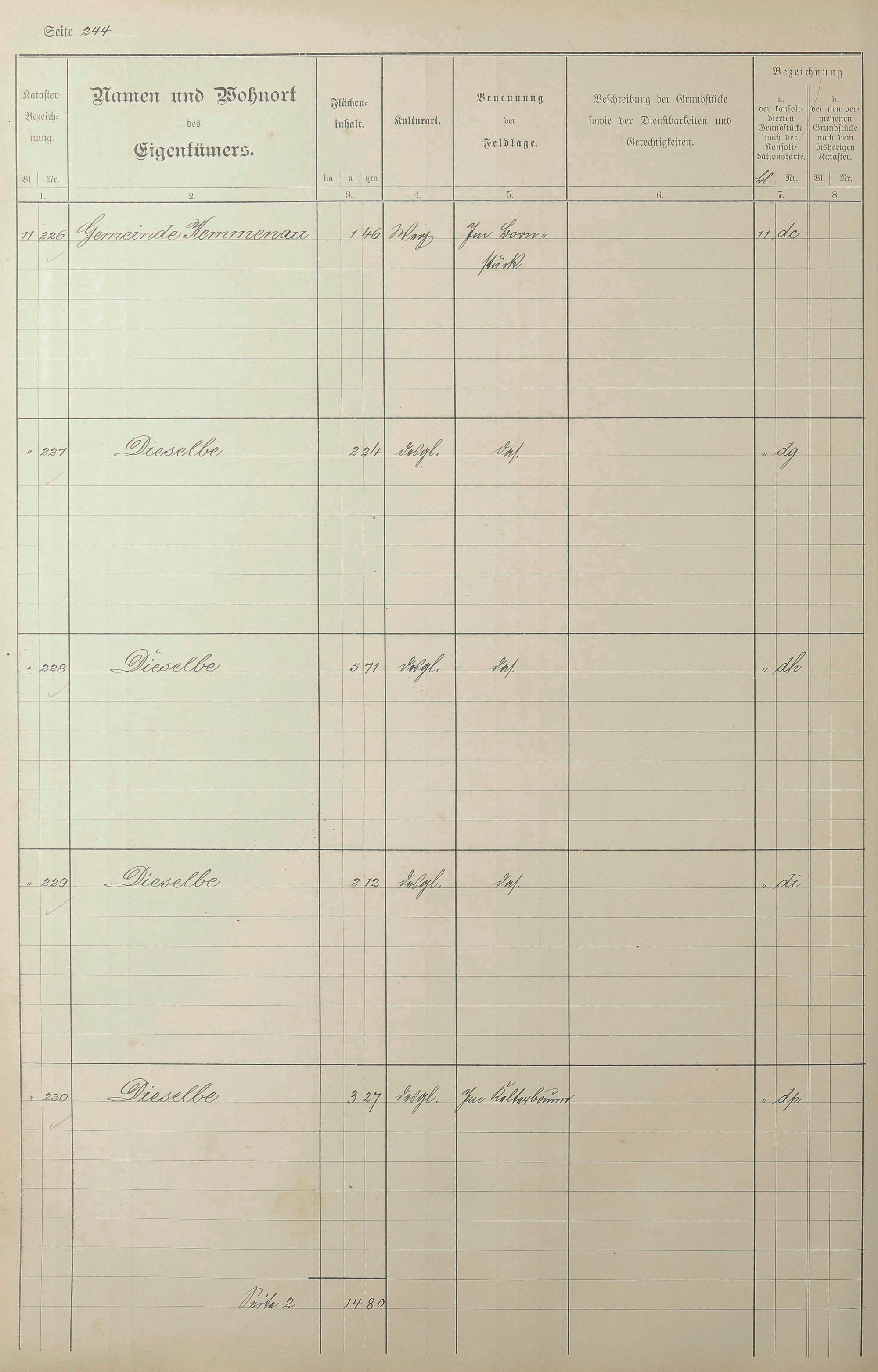 1: Lagerbuch der konsolidierten Gemarkung Kemmenau von dem Königlichen Kommissar...
