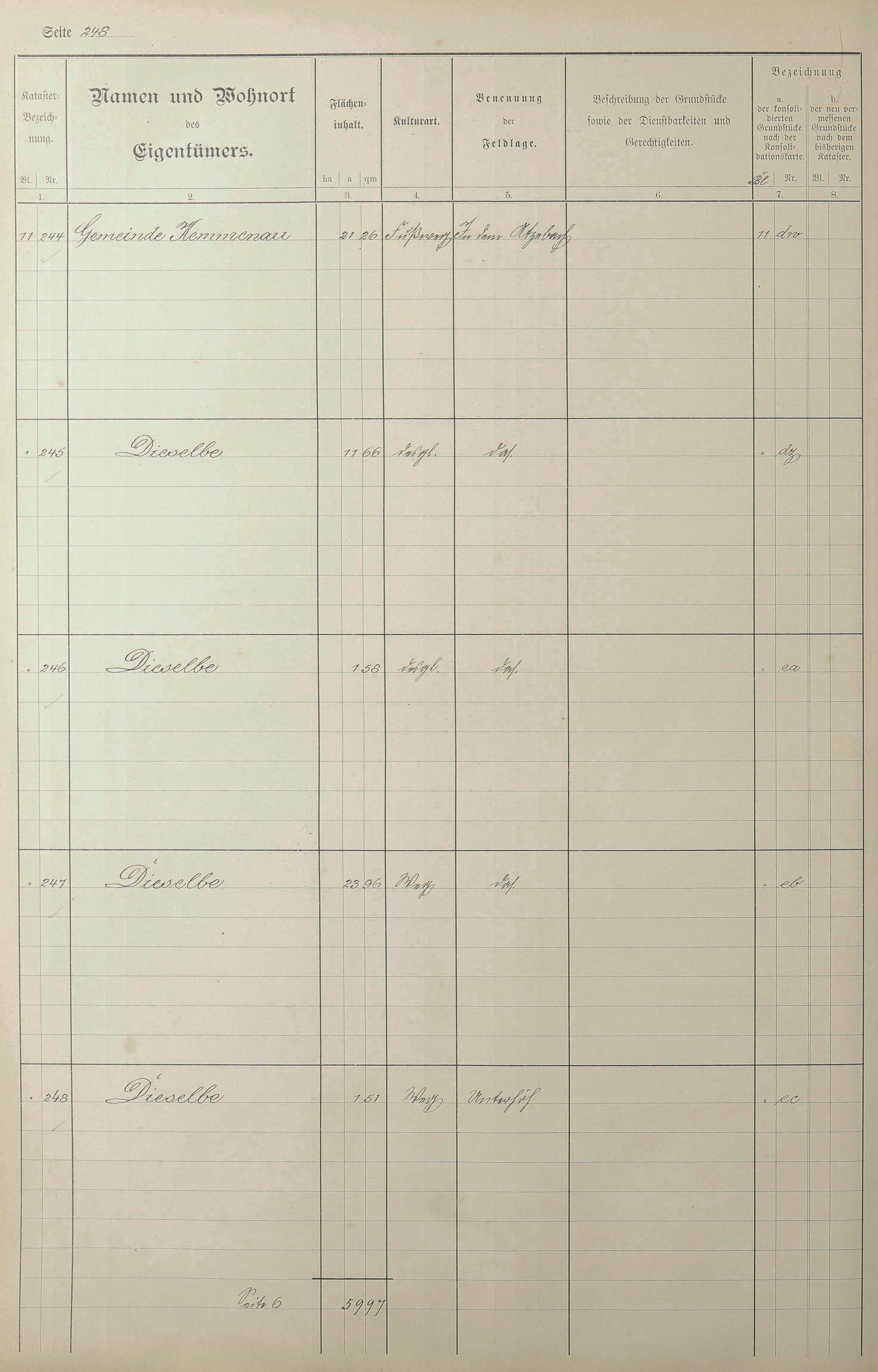 1: Lagerbuch der konsolidierten Gemarkung Kemmenau von dem Königlichen Kommissar...