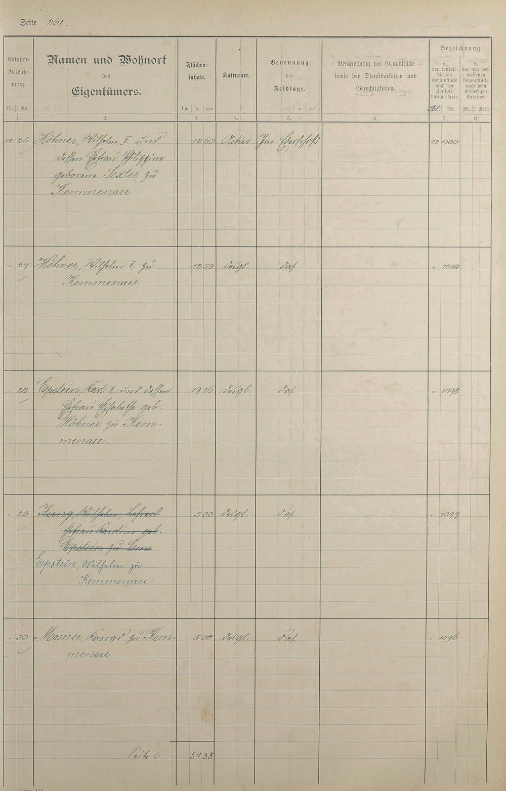 1: Lagerbuch der konsolidierten Gemarkung Kemmenau von dem Königlichen Kommissar...