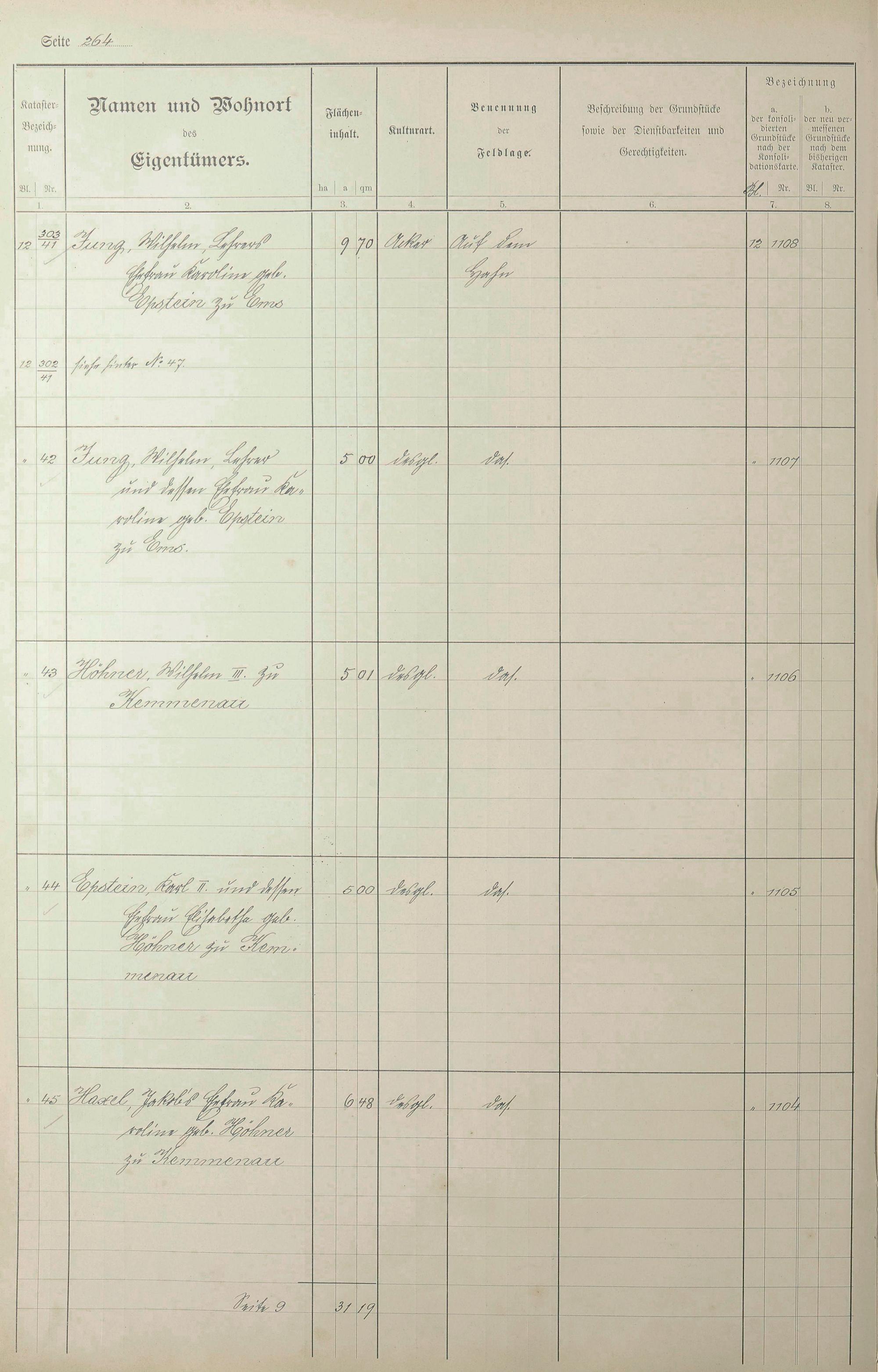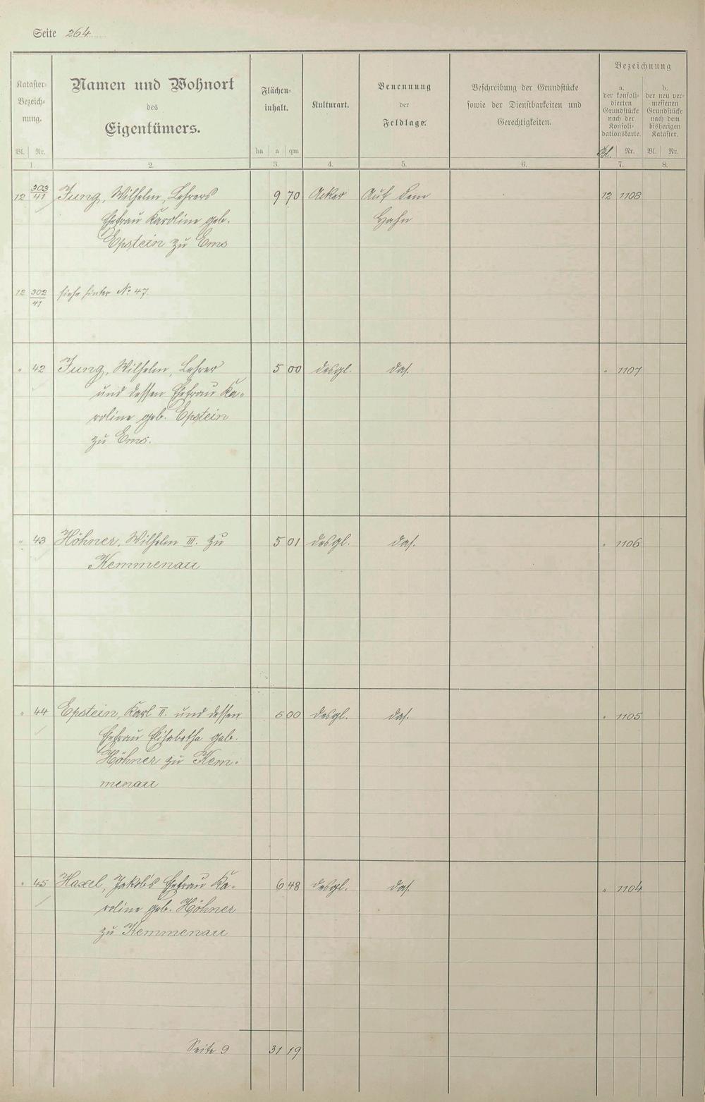 1: Lagerbuch der konsolidierten Gemarkung Kemmenau von dem Königlichen Kommissar...