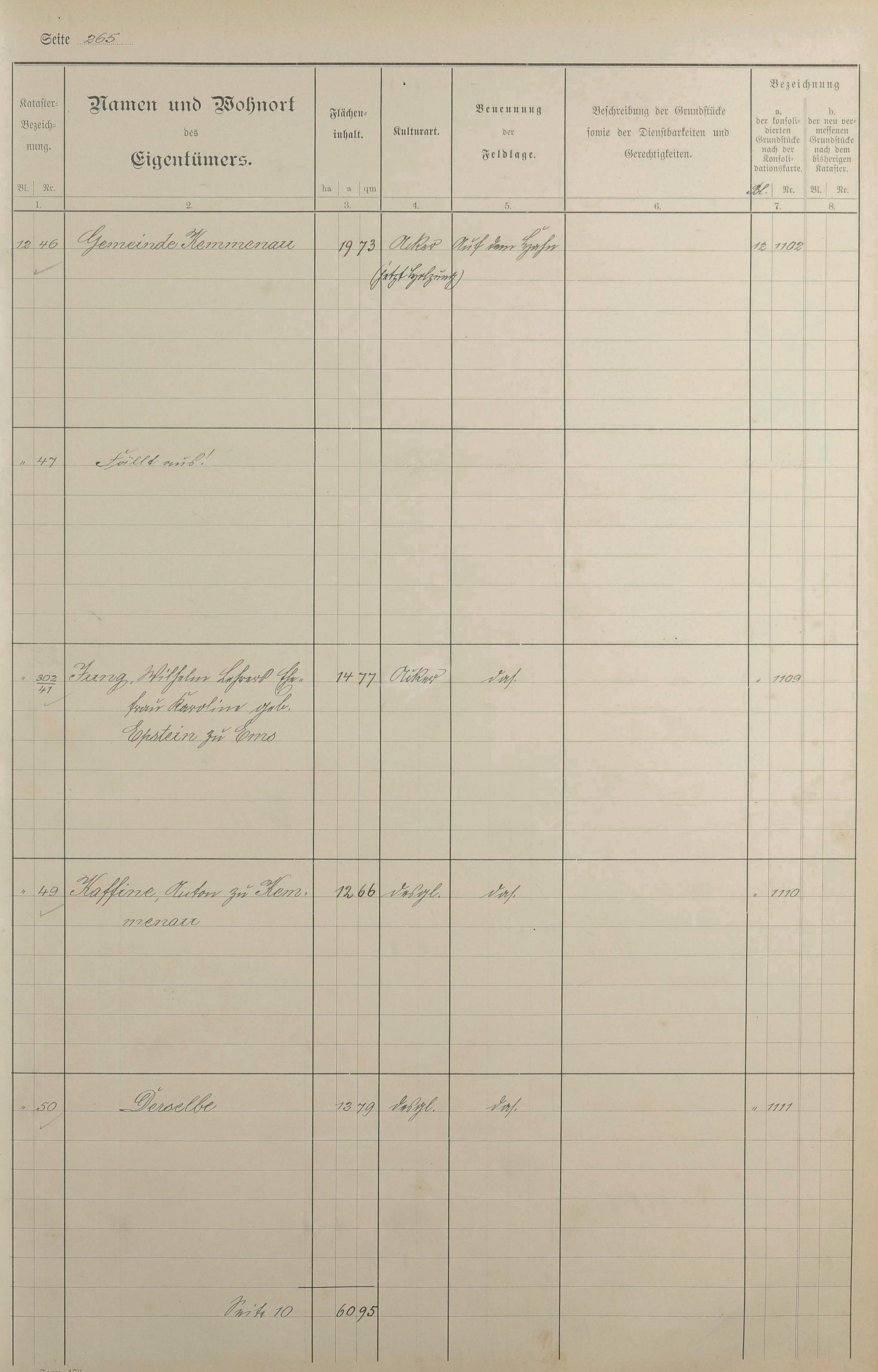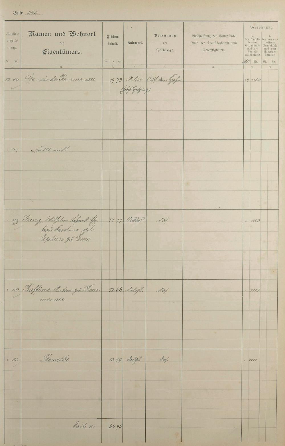 1: Lagerbuch der konsolidierten Gemarkung Kemmenau von dem Königlichen Kommissar...