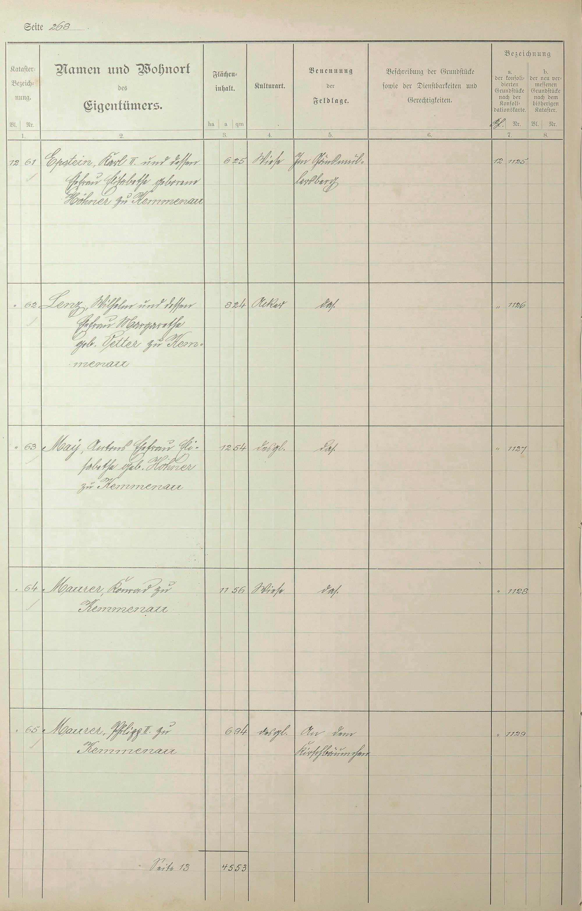 1: Lagerbuch der konsolidierten Gemarkung Kemmenau von dem Königlichen Kommissar...
