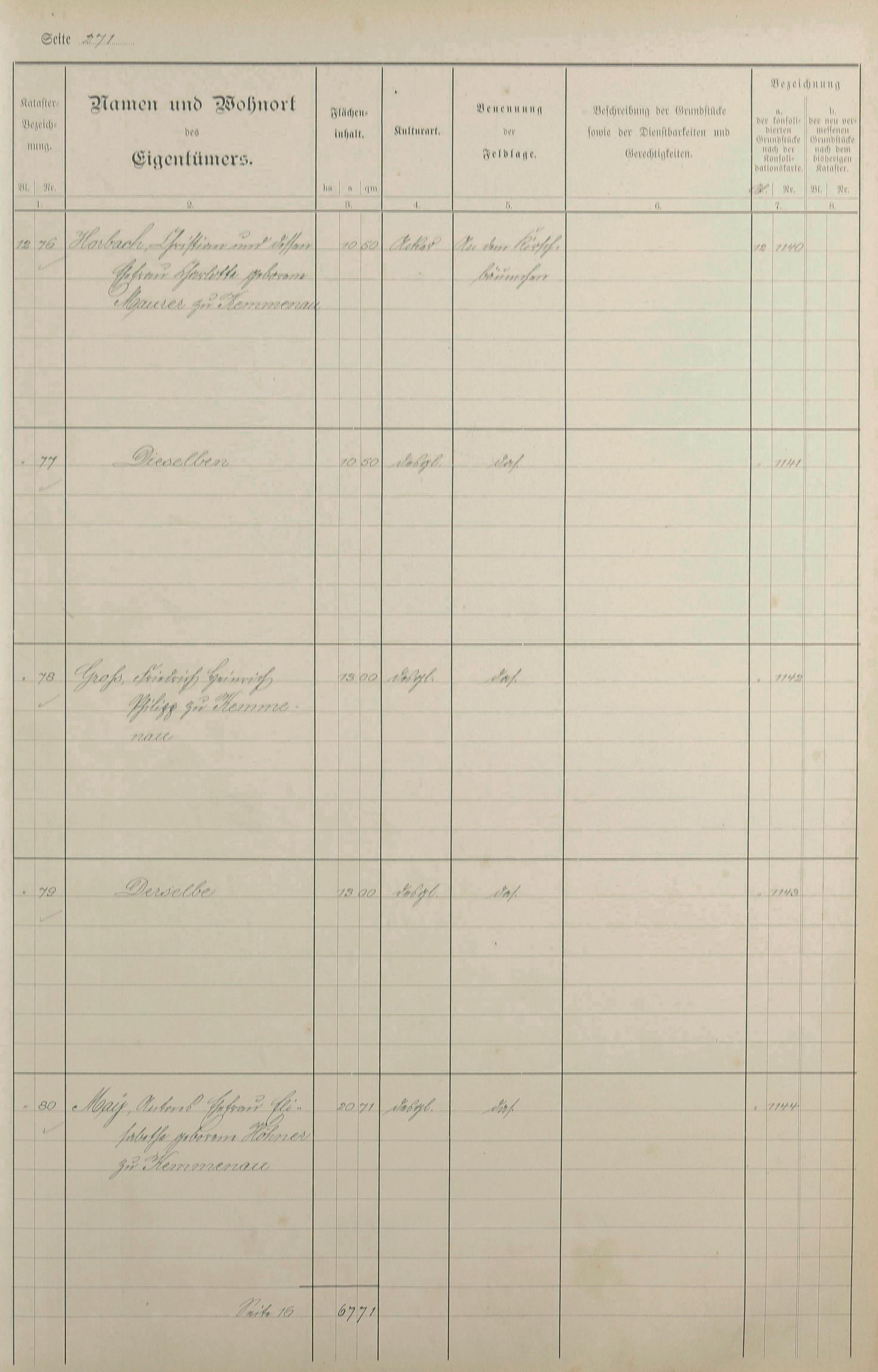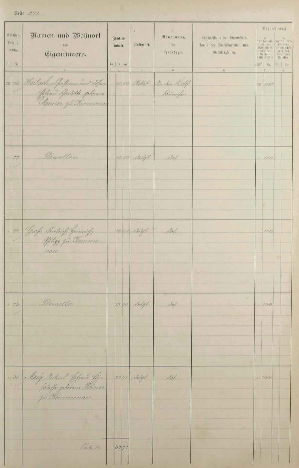1: Lagerbuch der konsolidierten Gemarkung Kemmenau von dem Königlichen Kommissar...