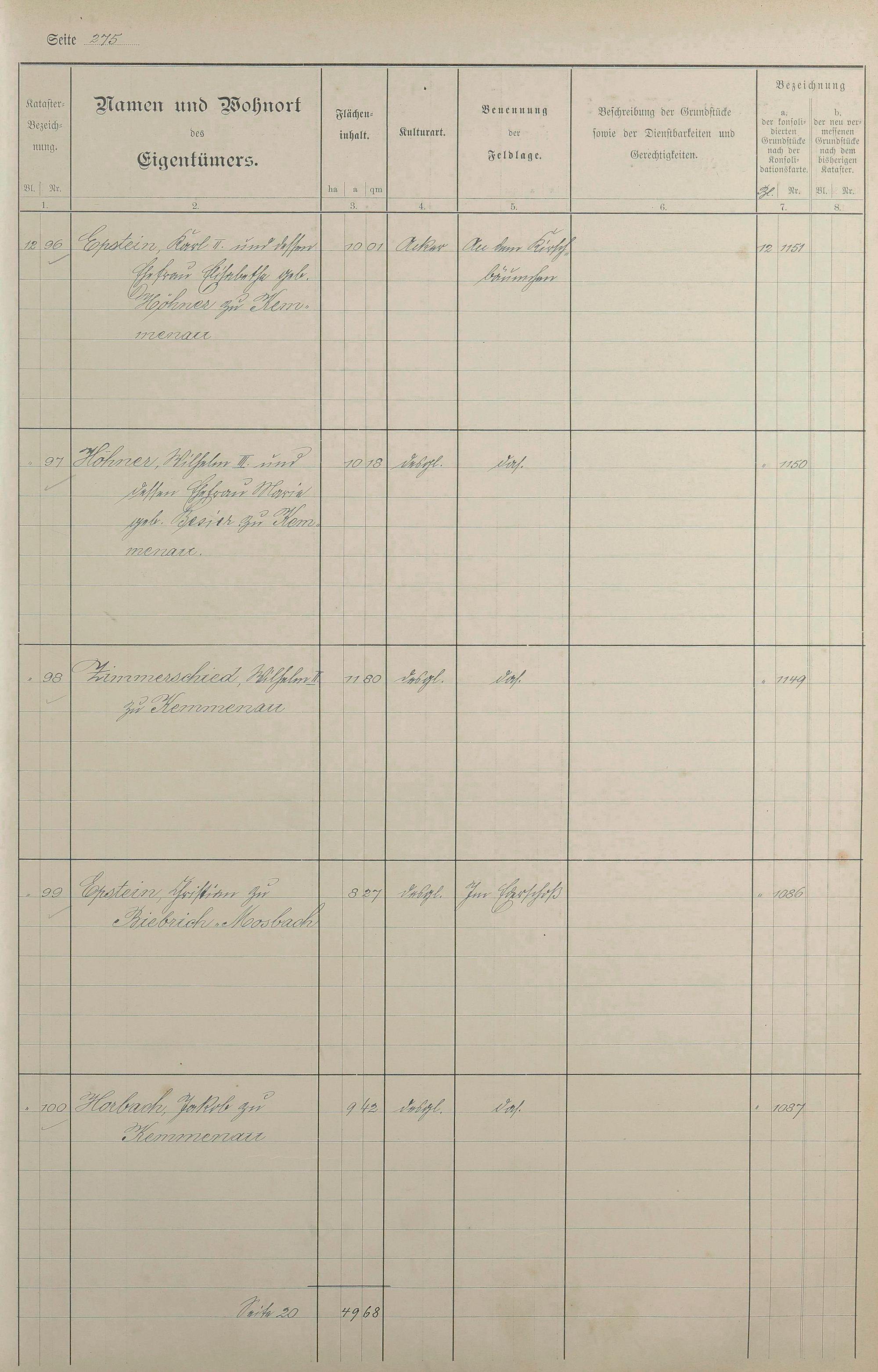1: Lagerbuch der konsolidierten Gemarkung Kemmenau von dem Königlichen Kommissar...