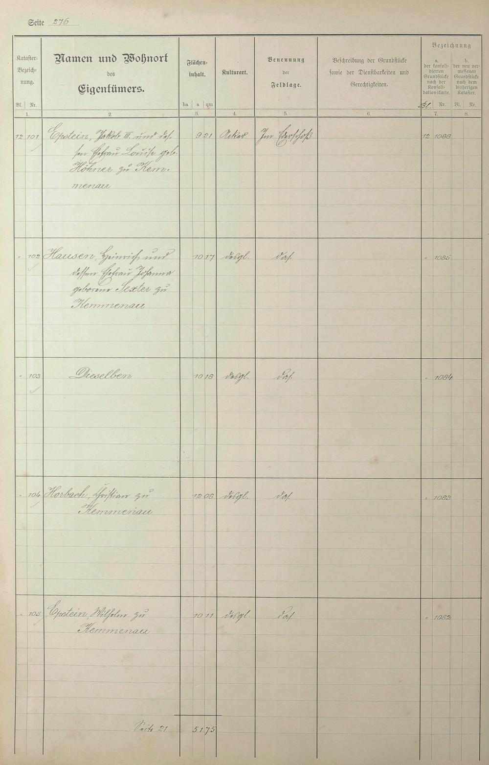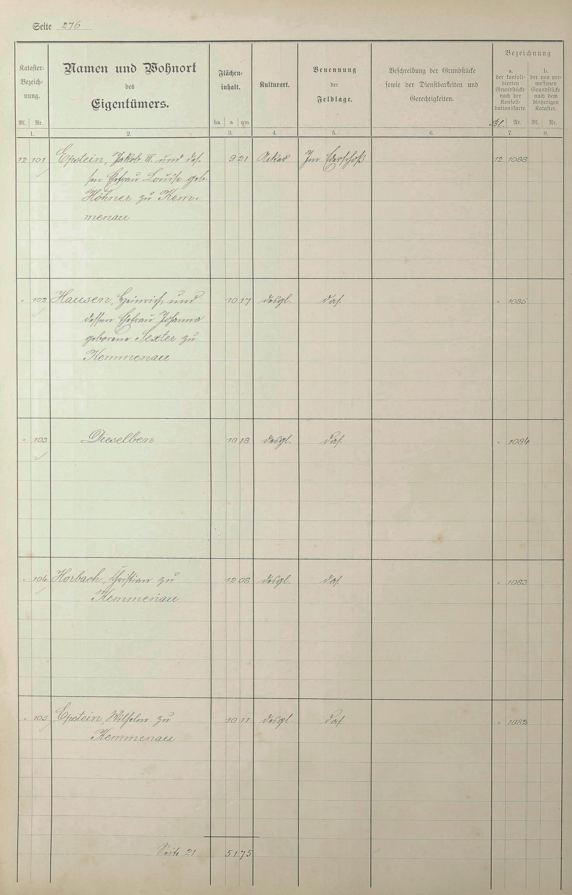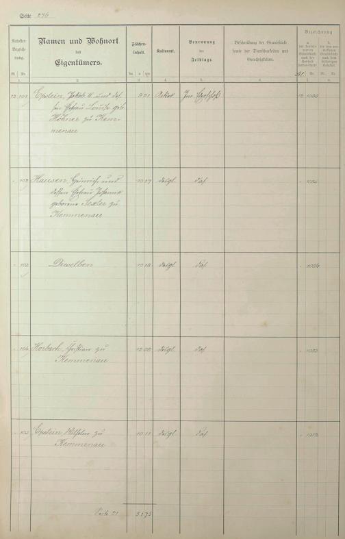 1: Lagerbuch der konsolidierten Gemarkung Kemmenau von dem Königlichen Kommissar...