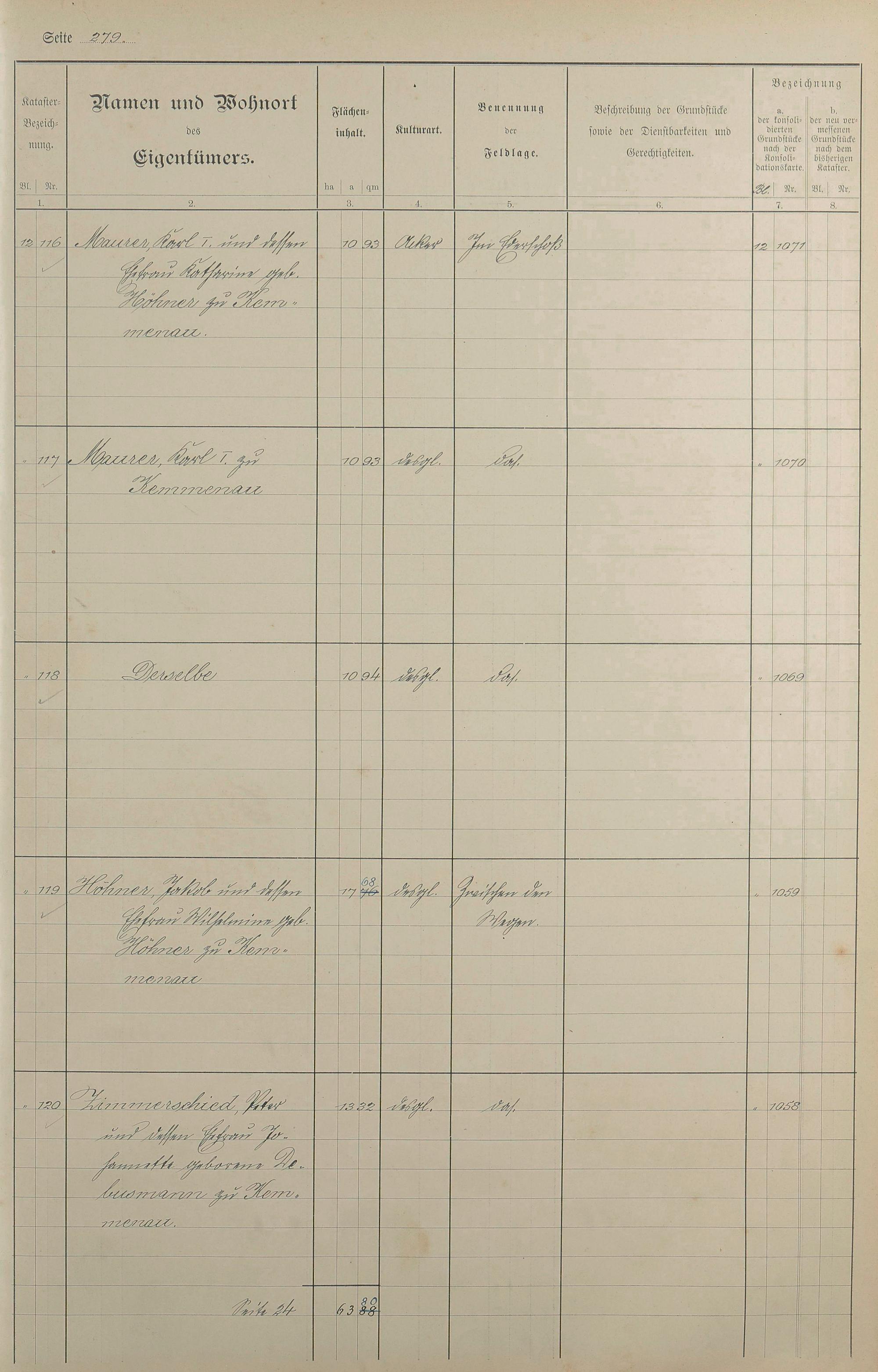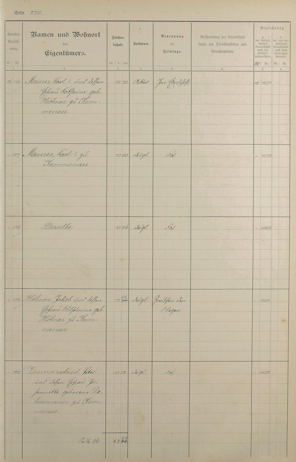 1: Lagerbuch der konsolidierten Gemarkung Kemmenau von dem Königlichen Kommissar...