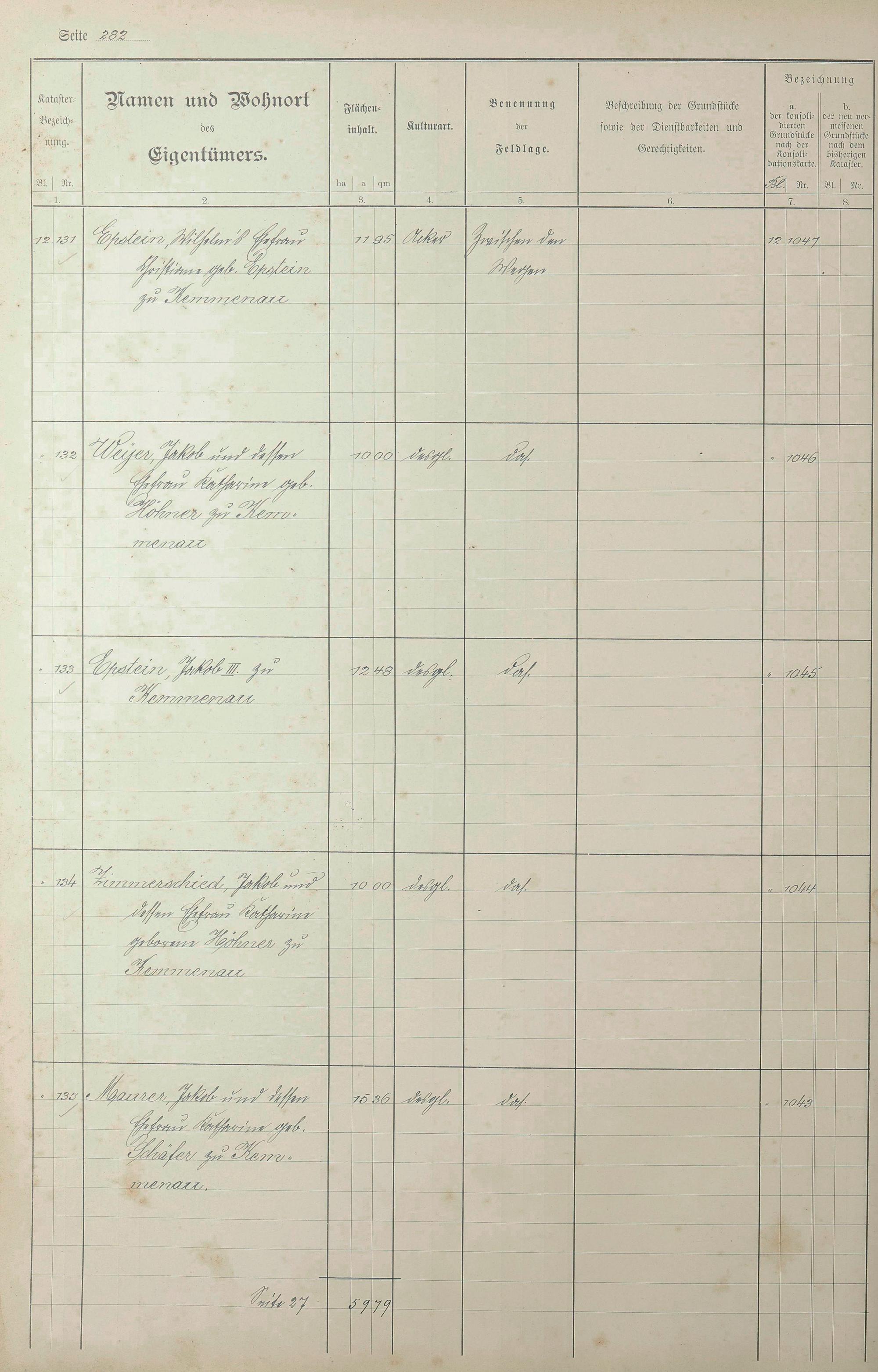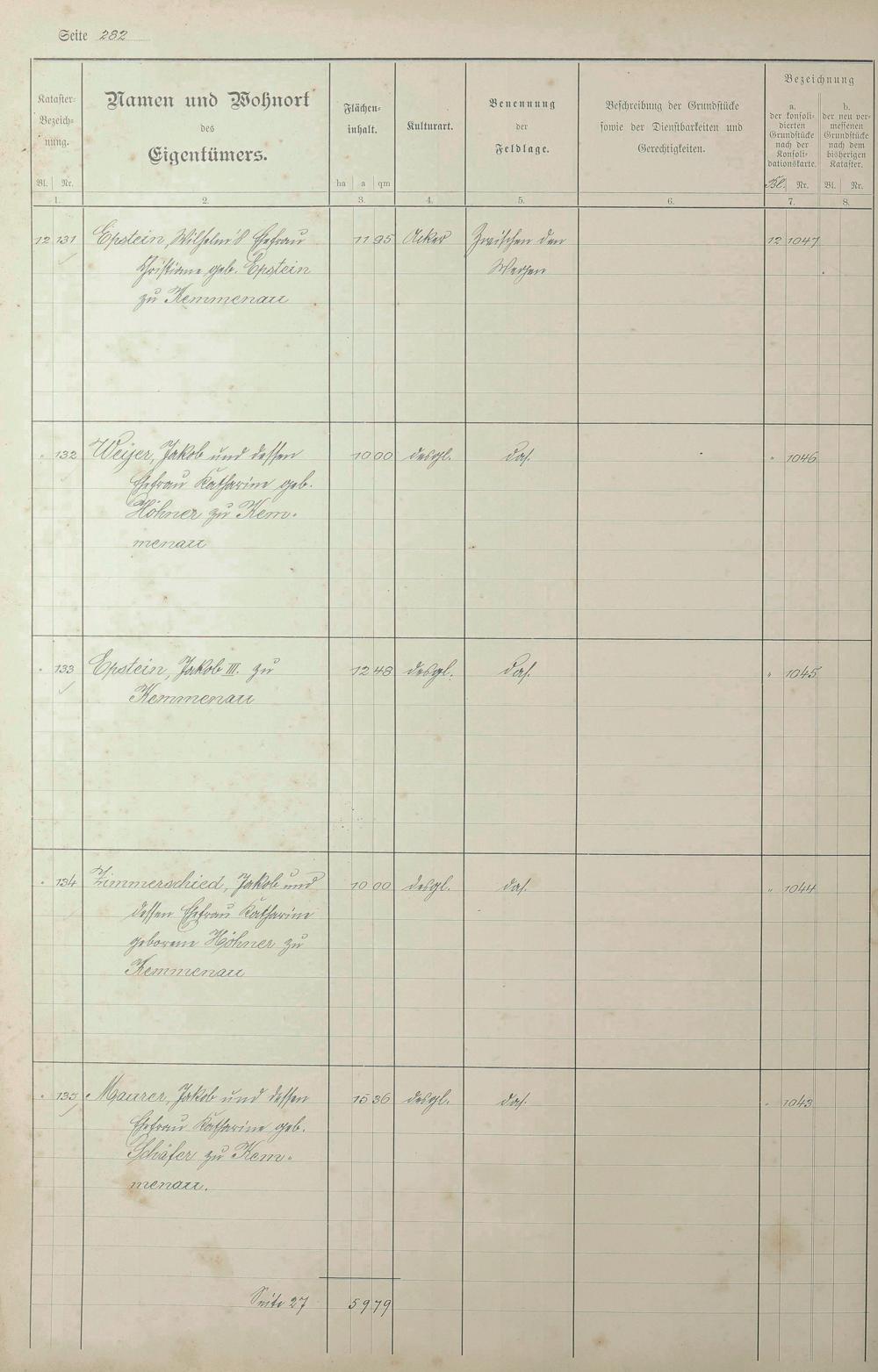 1: Lagerbuch der konsolidierten Gemarkung Kemmenau von dem Königlichen Kommissar...
