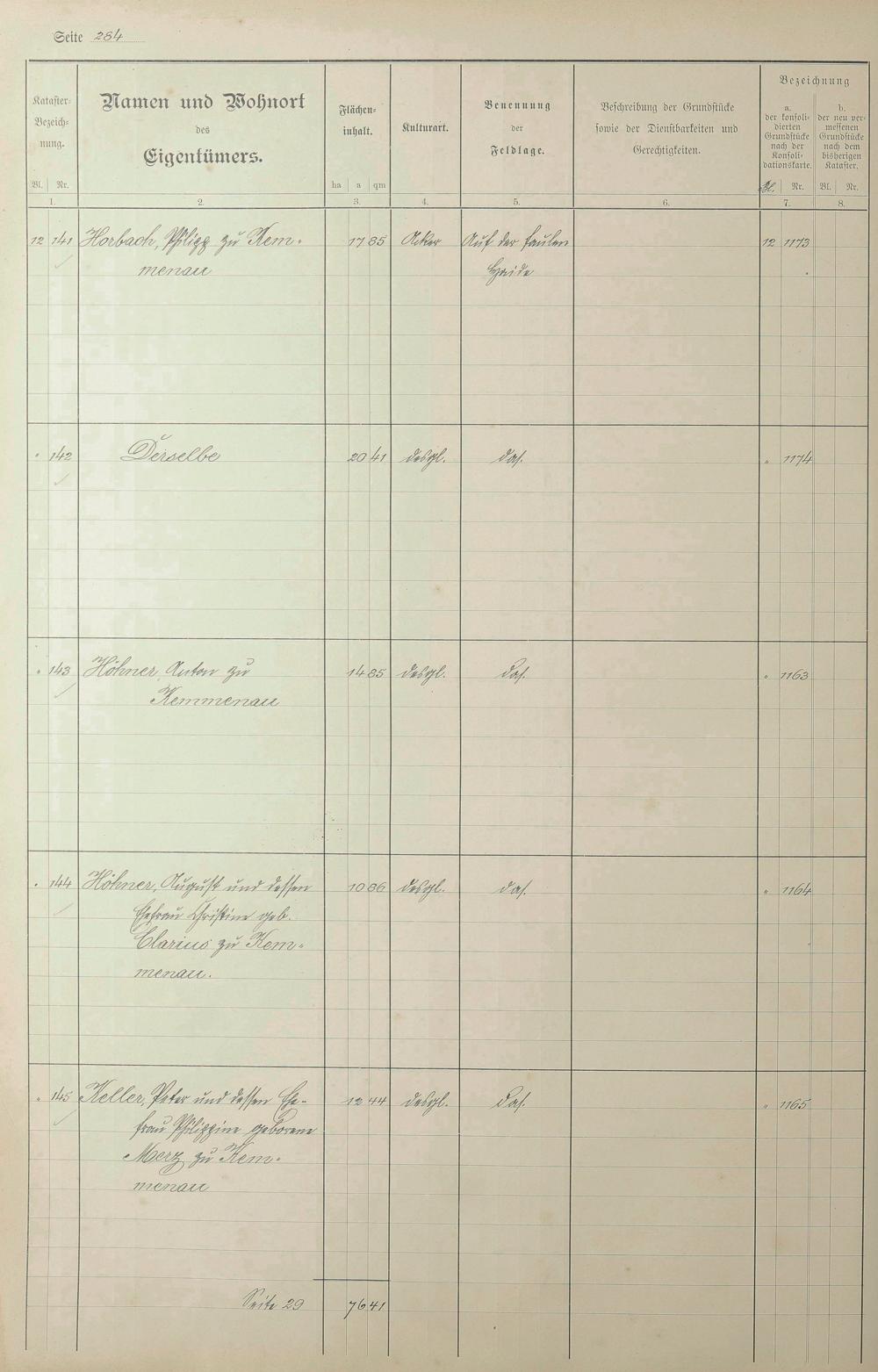 1: Lagerbuch der konsolidierten Gemarkung Kemmenau von dem Königlichen Kommissar...