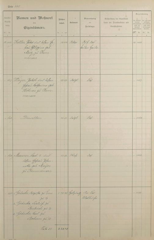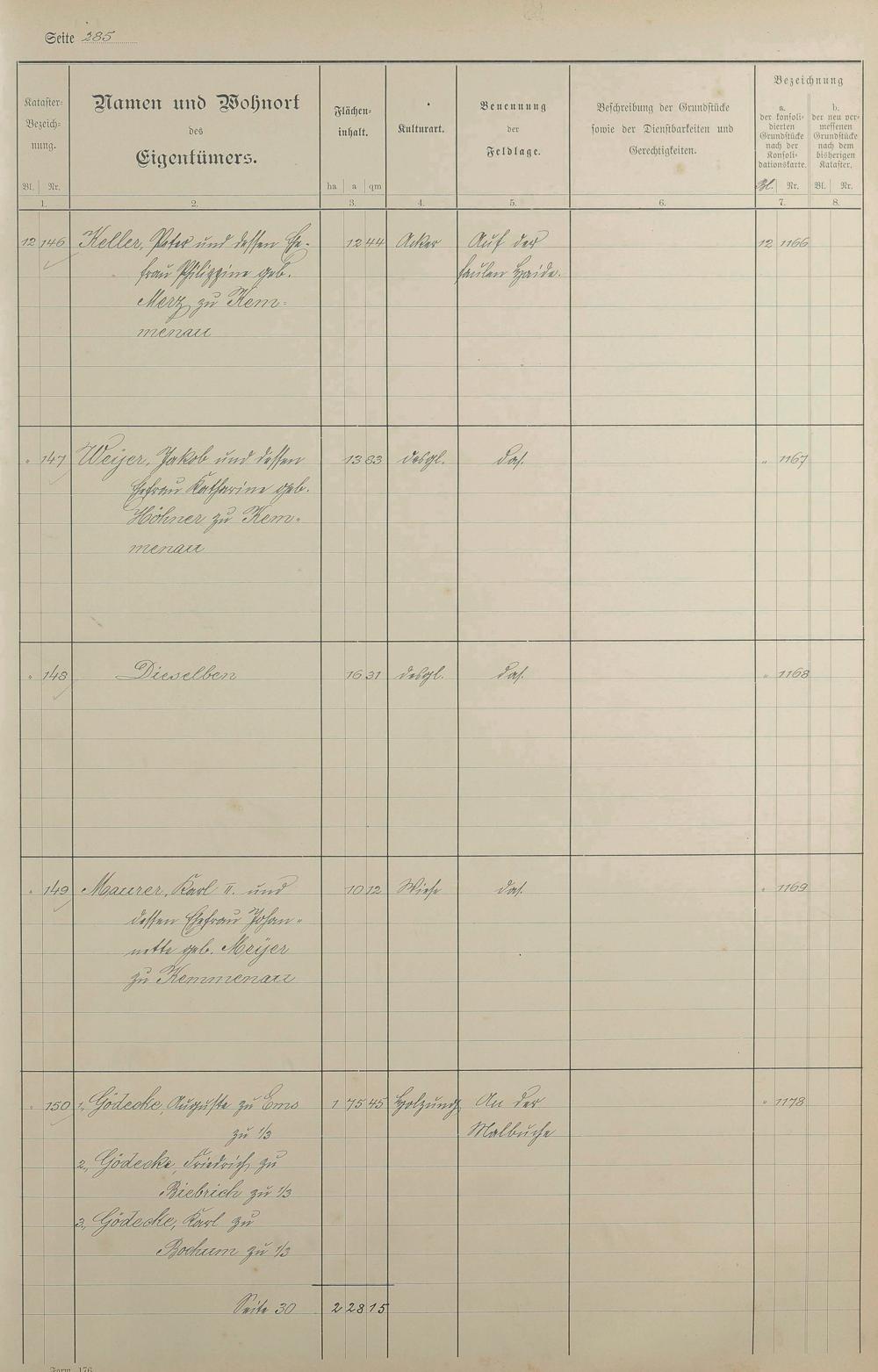 1: Lagerbuch der konsolidierten Gemarkung Kemmenau von dem Königlichen Kommissar...