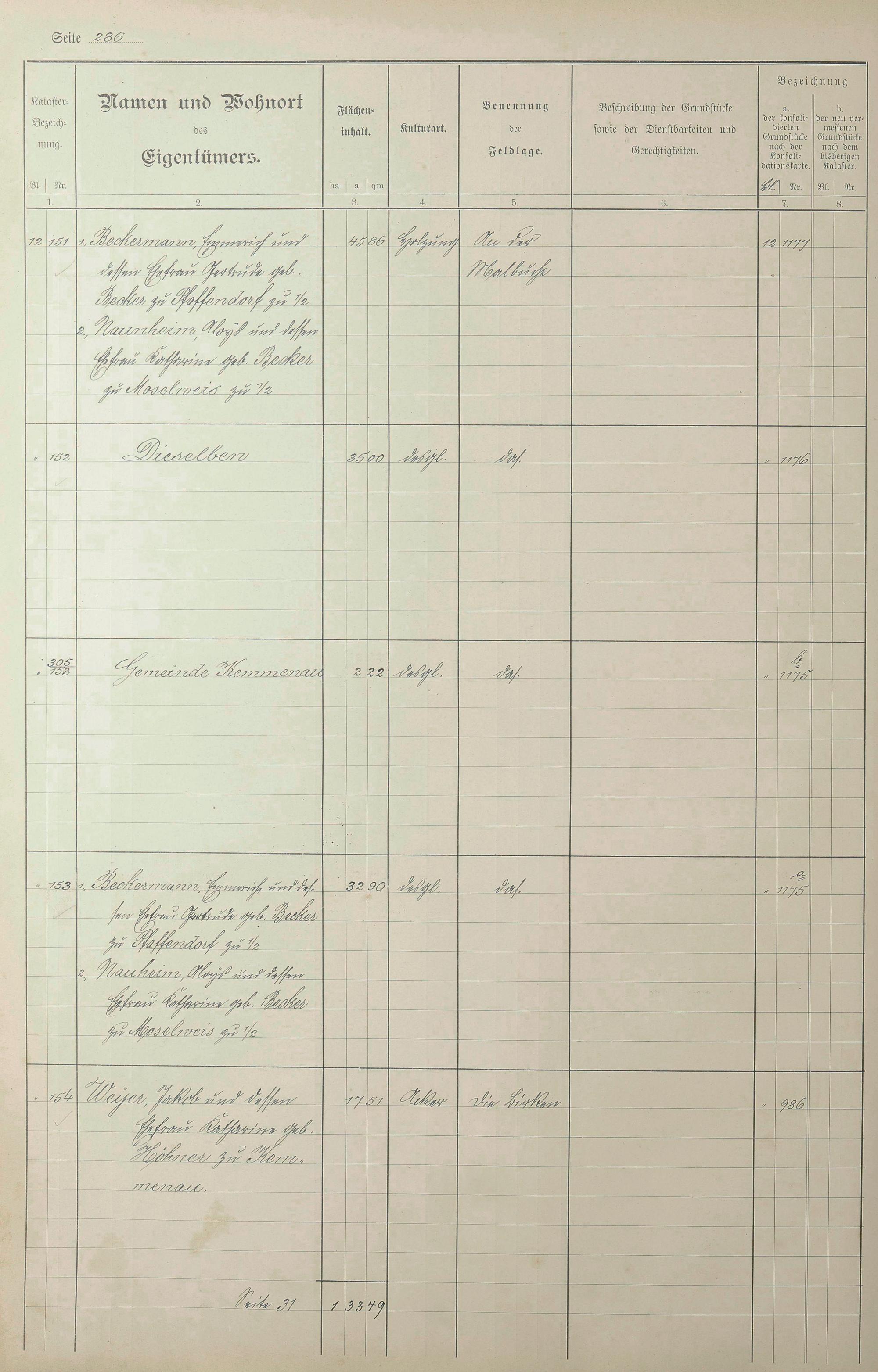 1: Lagerbuch der konsolidierten Gemarkung Kemmenau von dem Königlichen Kommissar...