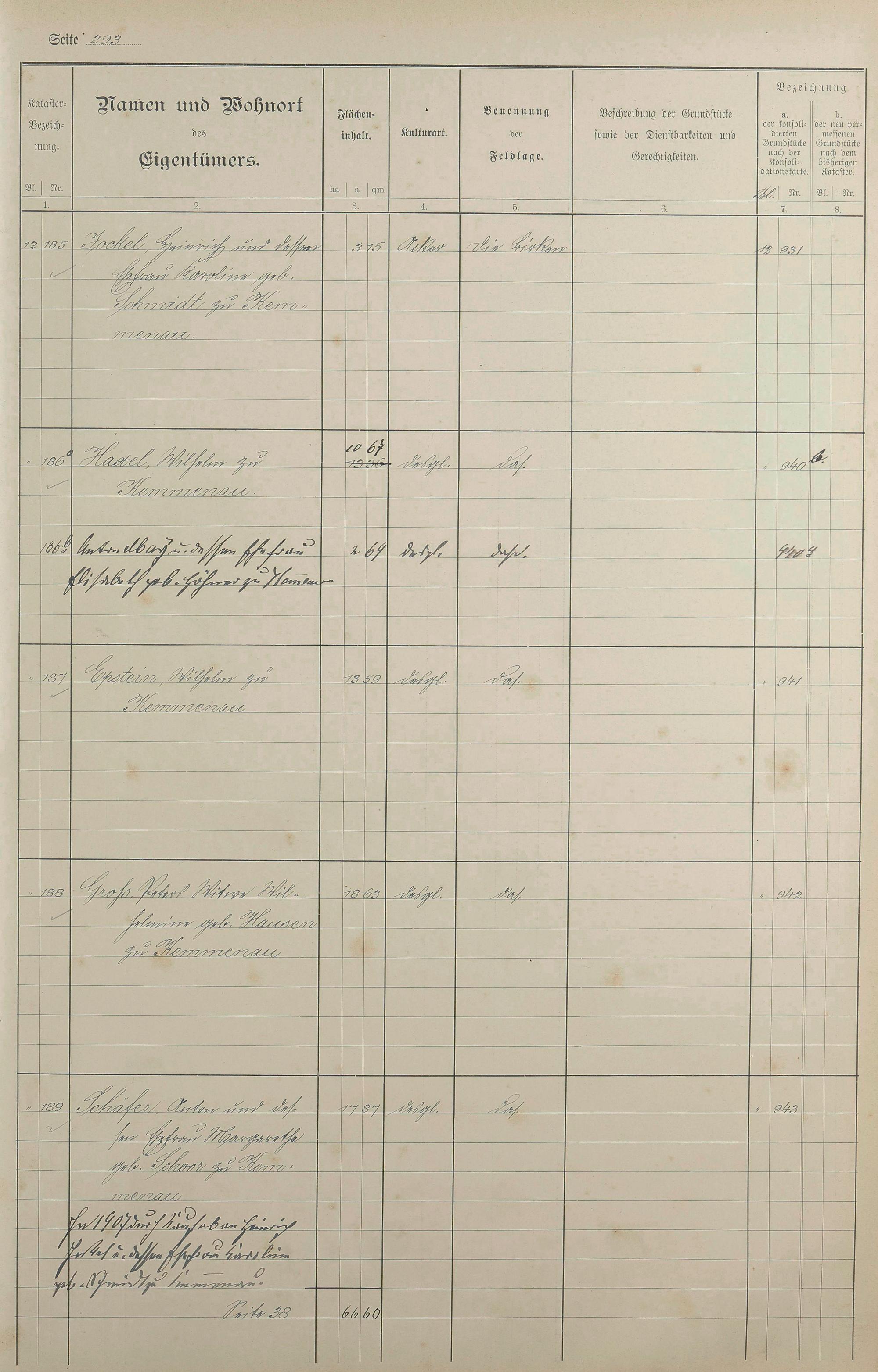 1: Lagerbuch der konsolidierten Gemarkung Kemmenau von dem Königlichen Kommissar...