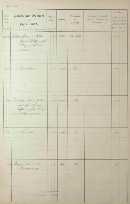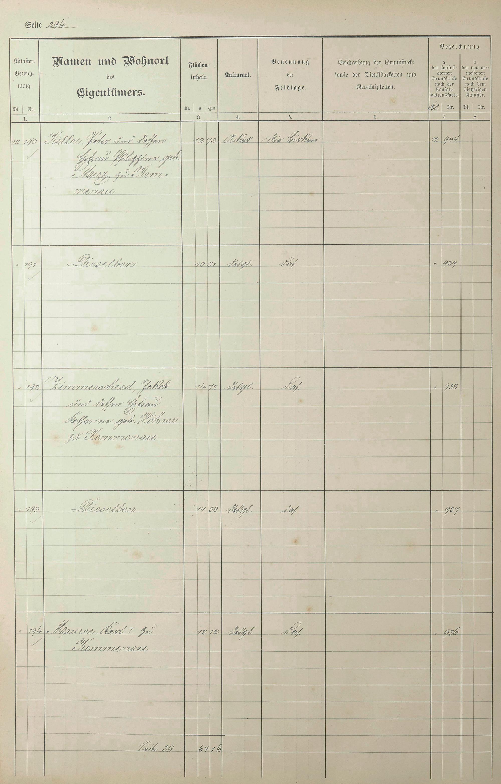 Lagerbuch der konsolidierten Gemarkung Kemmenau von dem Königlichen Kommissar für die Güterkonsolidation Regierungsrat Schiffler und Vermessungsbeamten Steinbichler