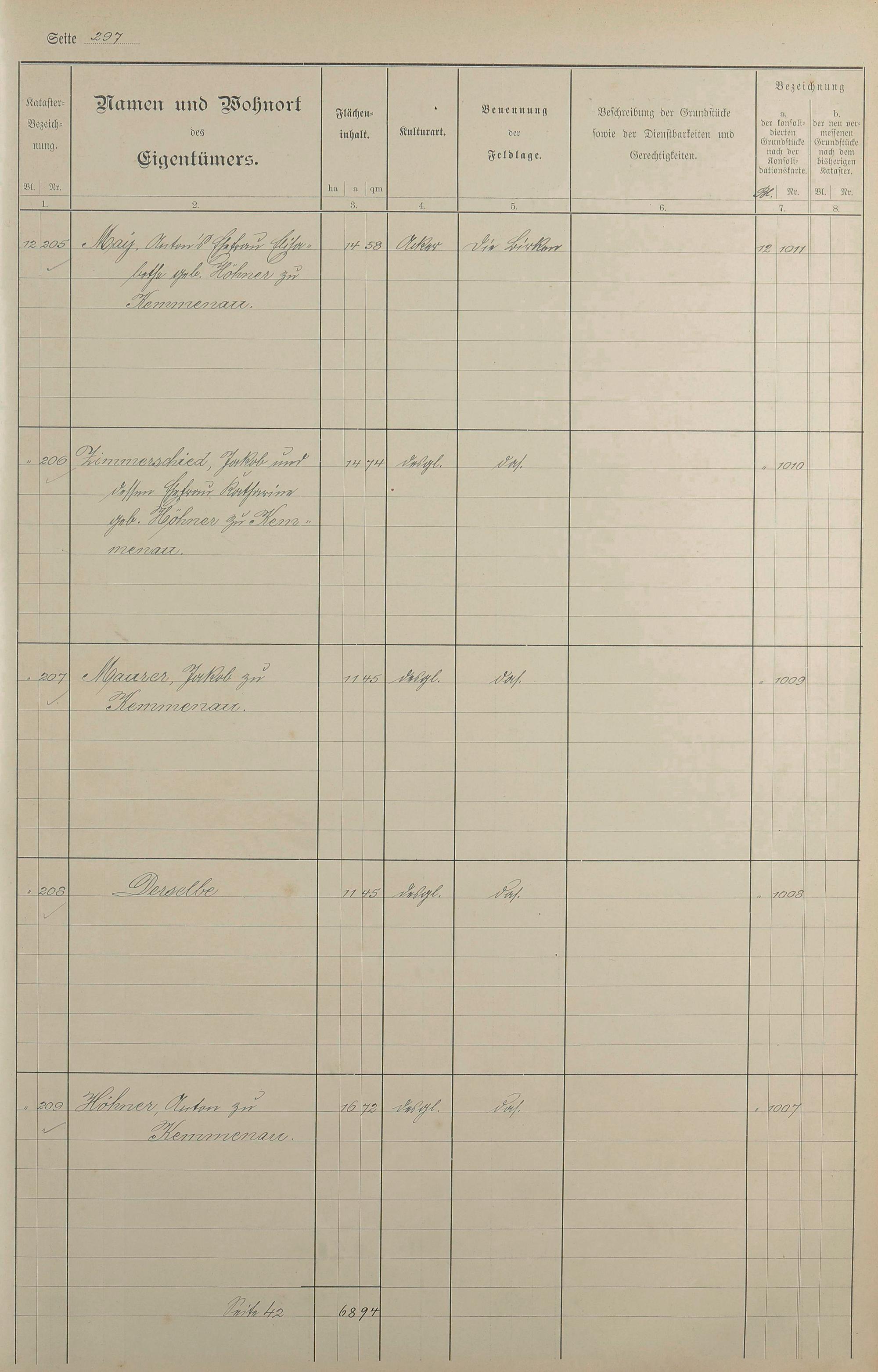 1: Lagerbuch der konsolidierten Gemarkung Kemmenau von dem Königlichen Kommissar...