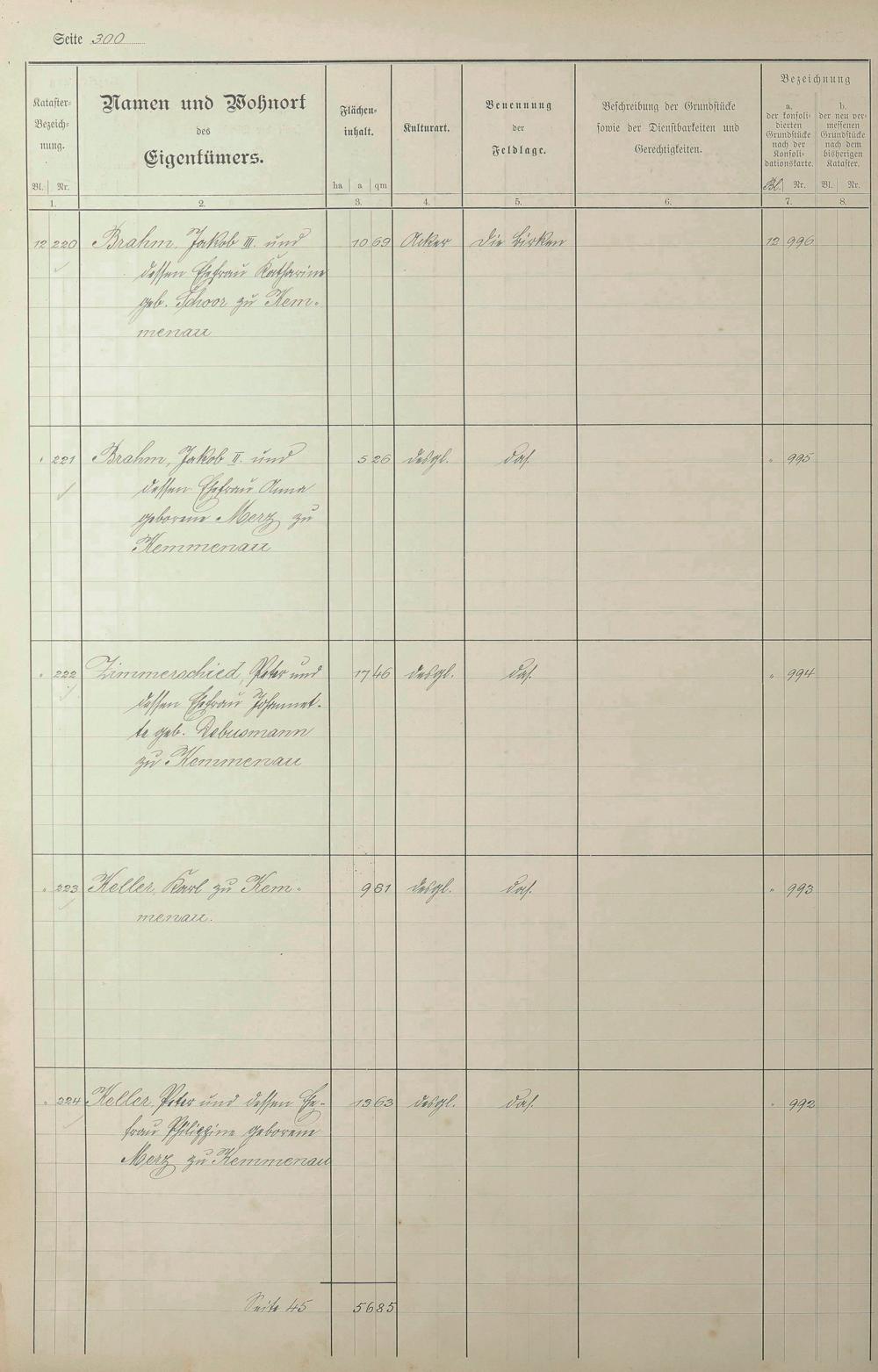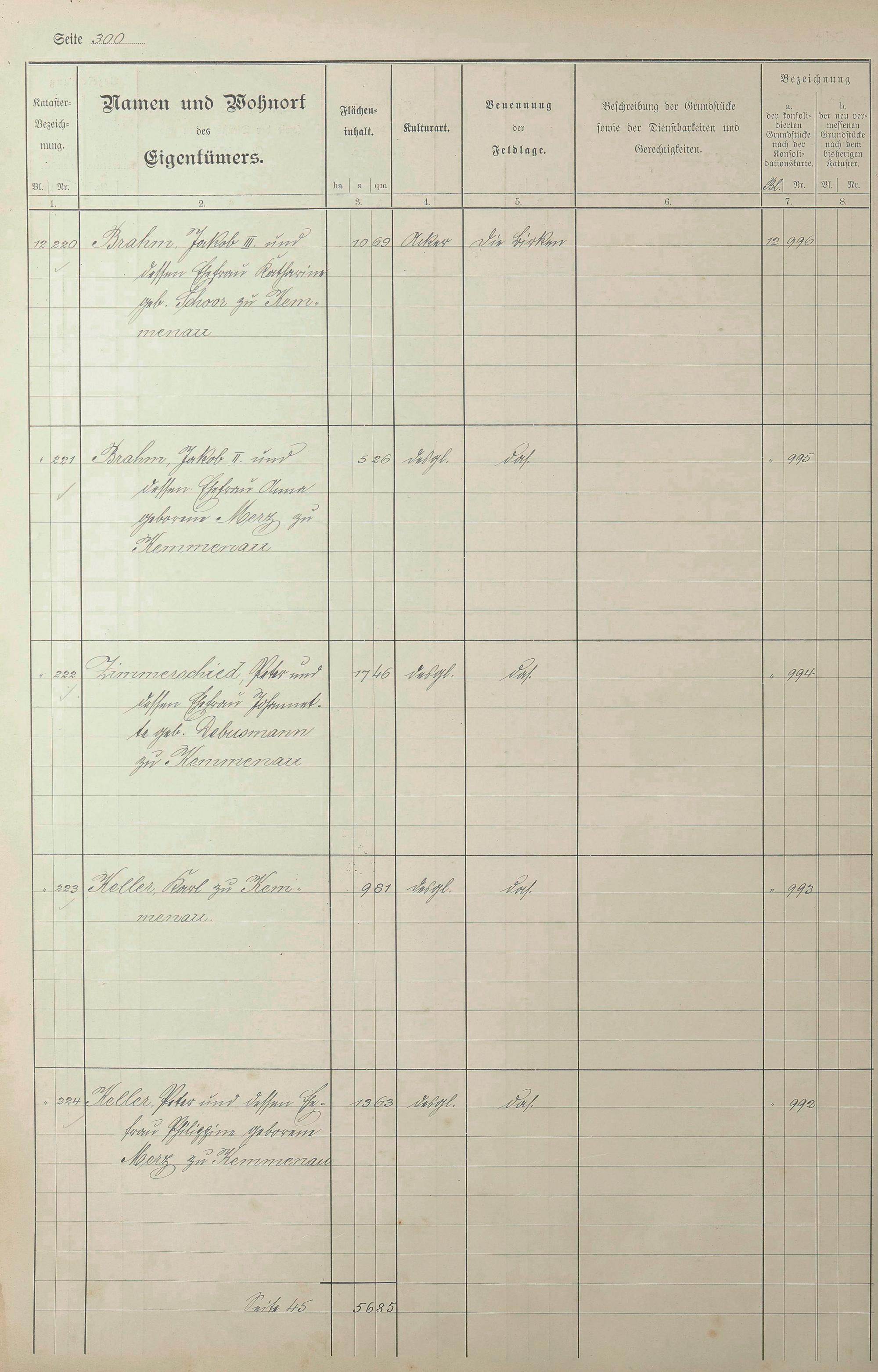 1: Lagerbuch der konsolidierten Gemarkung Kemmenau von dem Königlichen Kommissar...