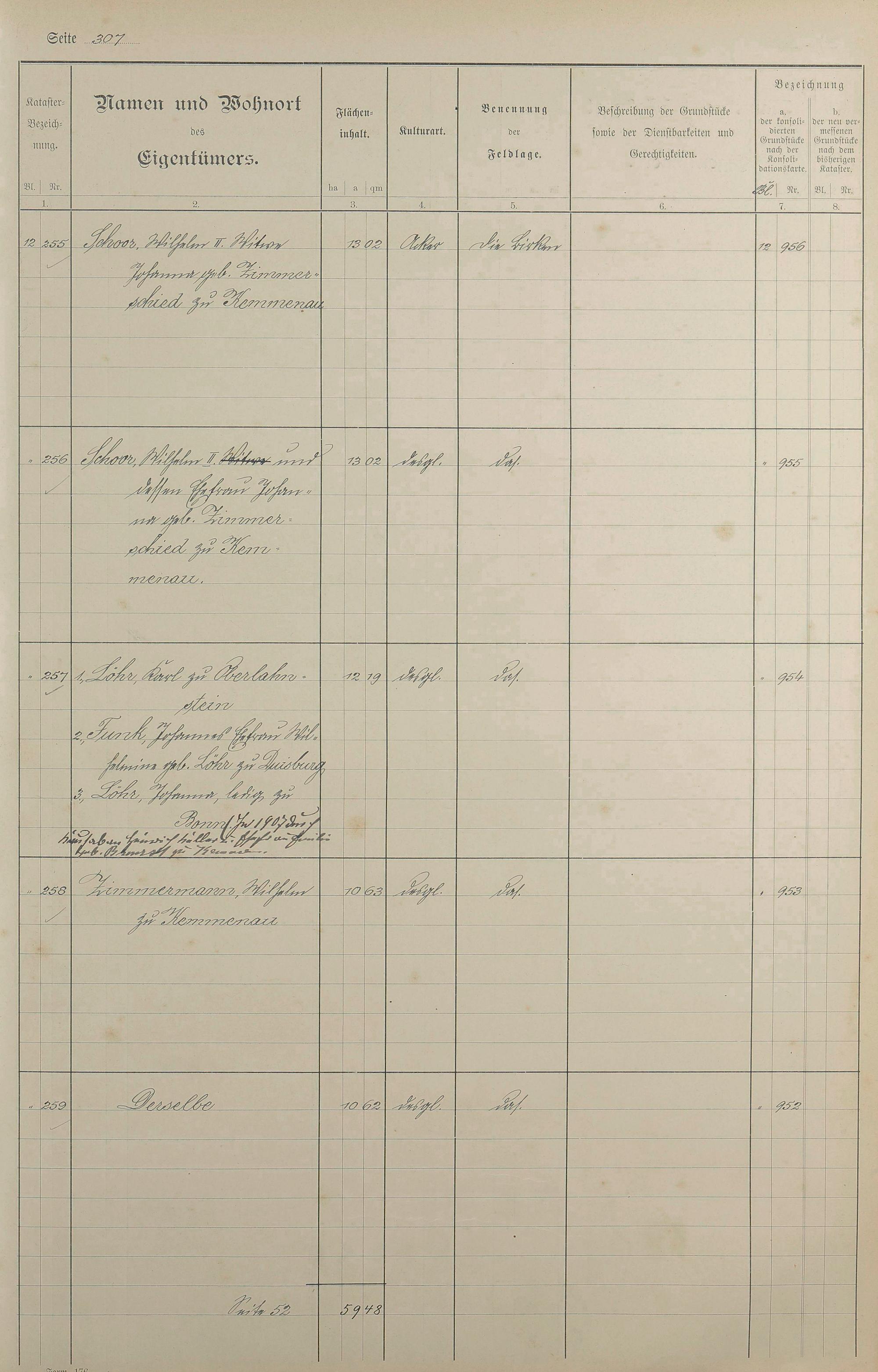 Lagerbuch der konsolidierten Gemarkung Kemmenau von dem Königlichen Kommissar für die Güterkonsolidation Regierungsrat Schiffler und Vermessungsbeamten Steinbichler
