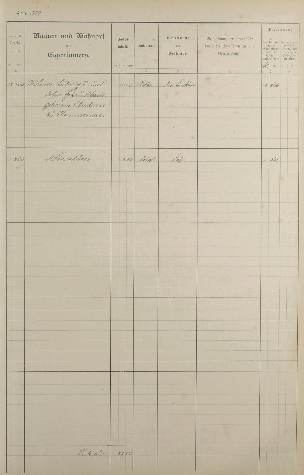 Lagerbuch der konsolidierten Gemarkung Kemmenau von dem Königlichen Kommissar für die Güterkonsolidation Regierungsrat Schiffler und Vermessungsbeamten Steinbichler