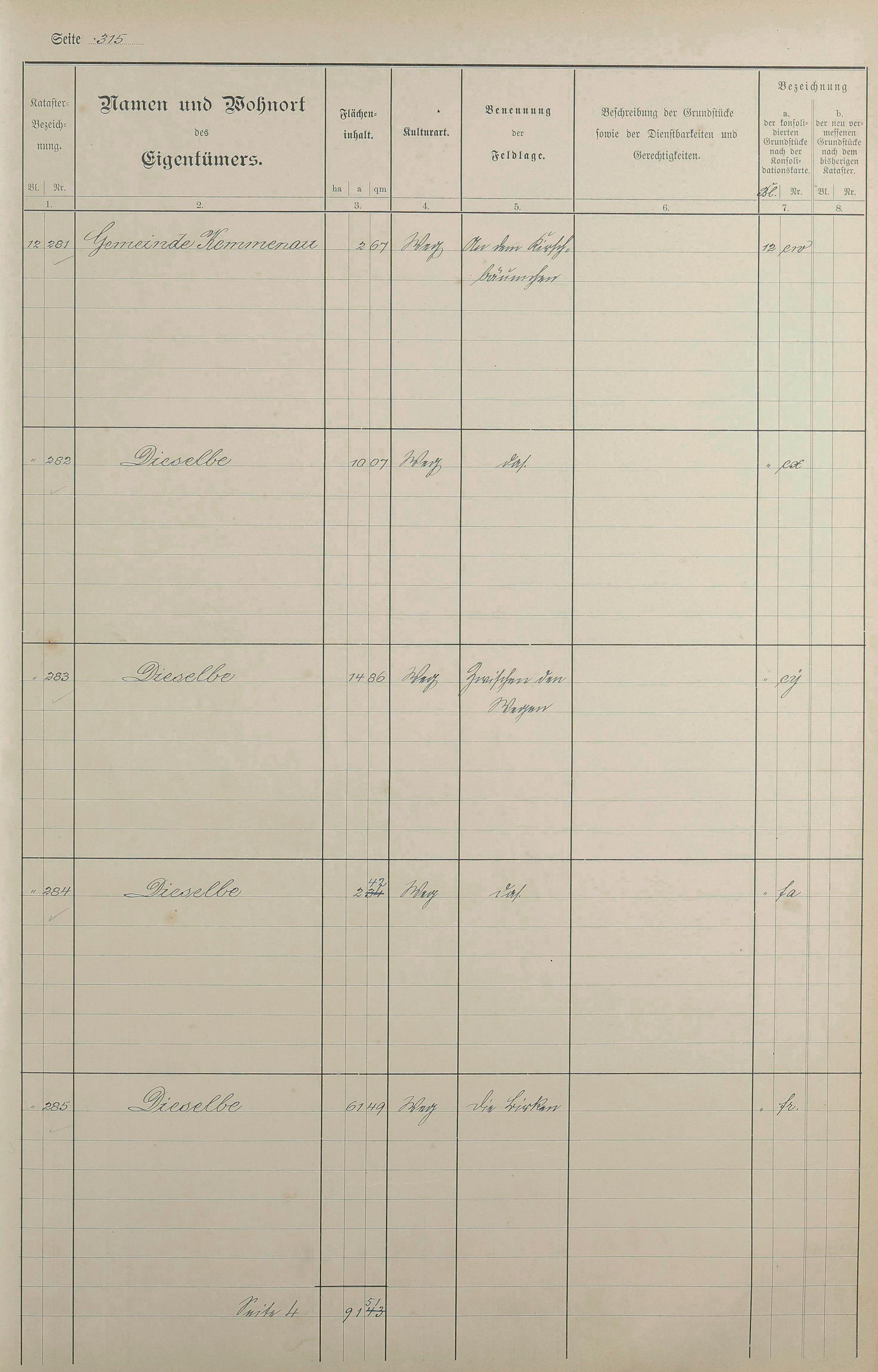 Lagerbuch der konsolidierten Gemarkung Kemmenau von dem Königlichen Kommissar für die Güterkonsolidation Regierungsrat Schiffler und Vermessungsbeamten Steinbichler