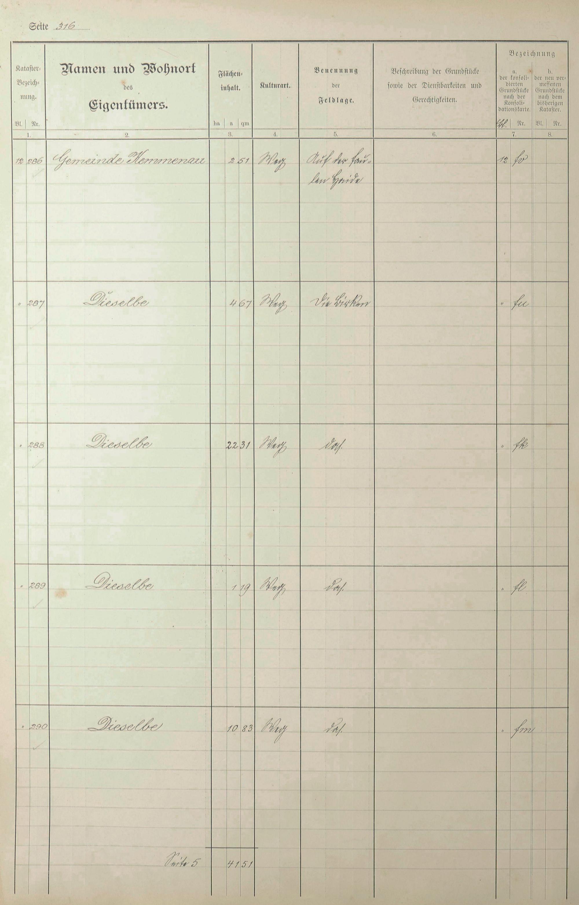 1: Lagerbuch der konsolidierten Gemarkung Kemmenau von dem Königlichen Kommissar...