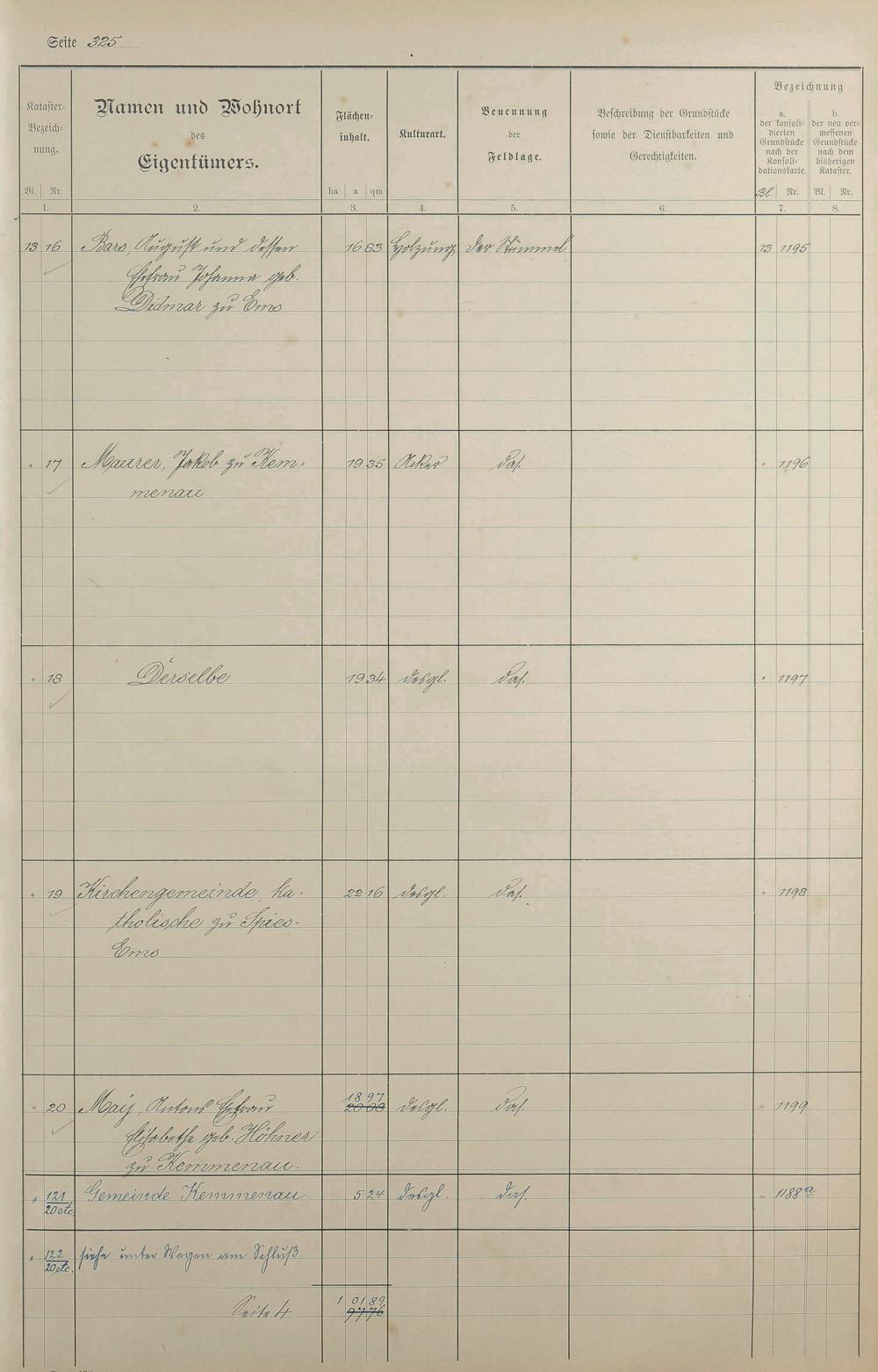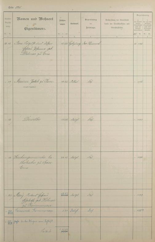 1: Lagerbuch der konsolidierten Gemarkung Kemmenau von dem Königlichen Kommissar...